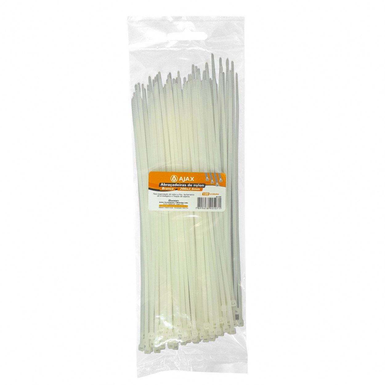 Abracadeira Nylon 200 x 2,5mm Branca 100 un, A11007 - AJAX