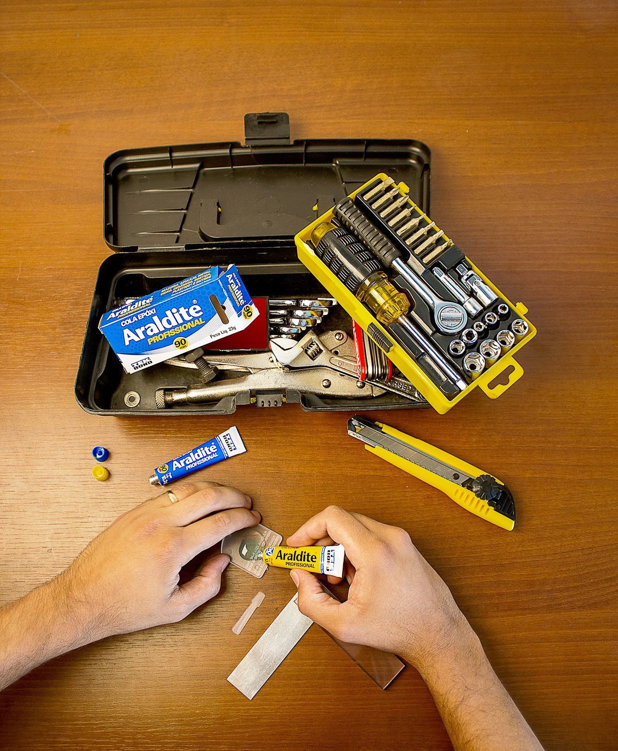Adesivo Araldite Profissional é indicado para colar superfícies de materiais lisos, porosos ou irregulares como azulejos, madeira, vidro, concreto, fibras naturais, pedras, a maioria dos plásticos rígidos (exceto polipropileno, polietileno e Nylon®), metais e outros materiais.
