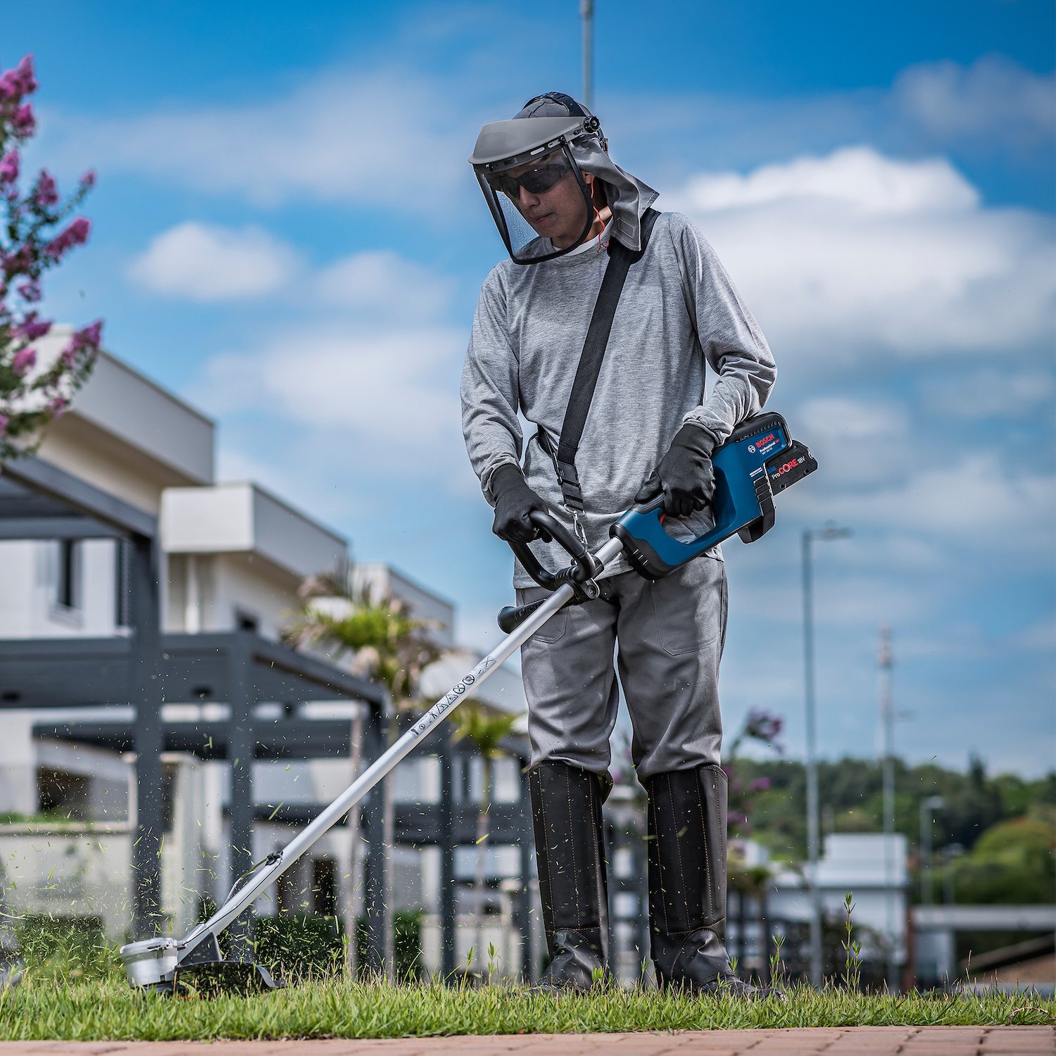 Compatível com 100% das baterias e carregadores 18V Bosch. Acompanha fio de nylon ProTap, protetor, limitador de corte e alça. Produto sem bateria. Garantia de 2 anos Bosch, com 1 ano adicional via cadastro no app BeConnected.