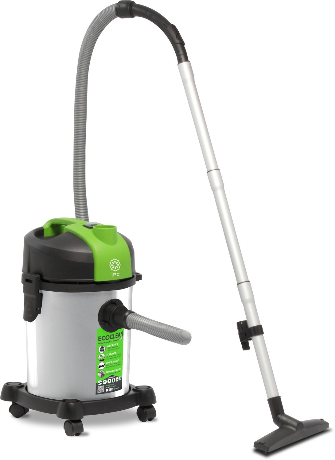 O Aspirador Profissional 1200W Ecoclean Lite AA118 IPC BRASIL é um aspirador de pó e líquidos, ideal para residências, escritórios e pequenos comércios. Oferece excelente custo-benefício com funções como soprador e sistema anti-espuma.