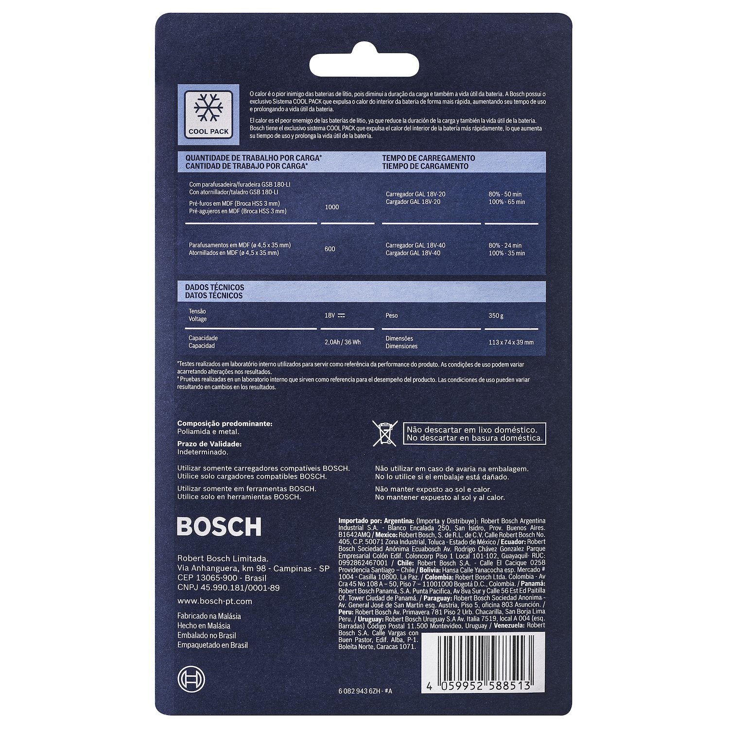 Compatibilidade: 100% com ferramentas e carregadores Bosch 18V