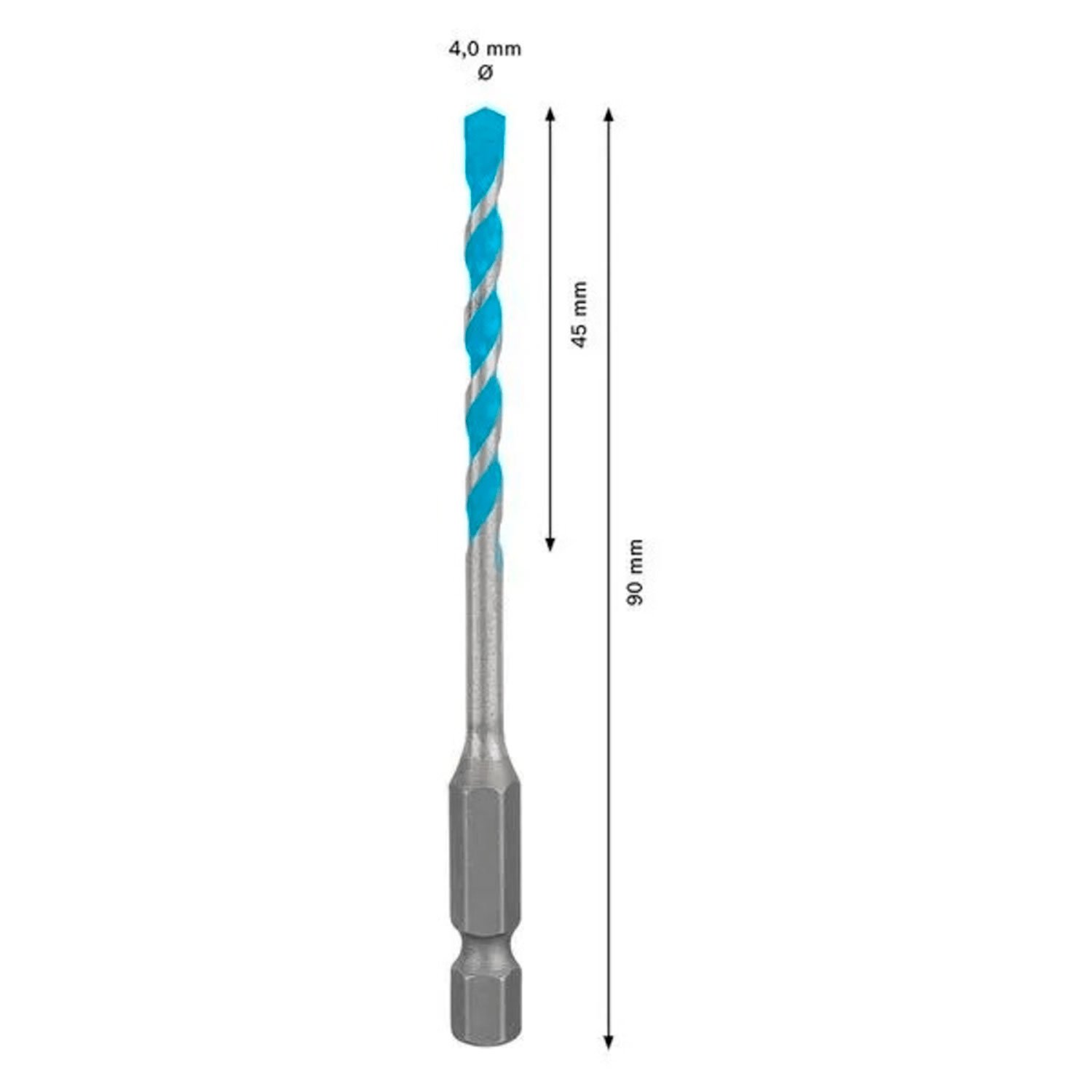 A Broca Bosch EXPERT HEX-9 MultiConstruction 2608900575 possui haste hexagonal de 1/4 de polegada e pode ser utilizada em parafusadeiras e furadeiras (com ou sem impacto), com ou sem cabo que possuam encaixe ou mandril compatível com 1/4 de polegada. É até 5 vezes mais precisa do que uma broca CYL-3. A broca EXPERT HEX-9 MultiConstruction oferece perfuração estável em quase todos os tipos de materiais, por isso é denominada como uma broca multimaterial. A combinação de carboneto de tungstênio Bosch com arestas de corte afiadas com diamante, tornam a broca resistente ao desgaste. Além disso, sua ponta centradora permite uma perfuração estável do início ao fim. A broca pode ser utilizada na instalação de interiores e em materiais como concreto macio, alvenaria, tijolo, fibrocimento, materiais de construção leves, materiais multicamada, cerâmicas e ladrilhos, madeira, plástico, chapas de metal finas e alumínio.