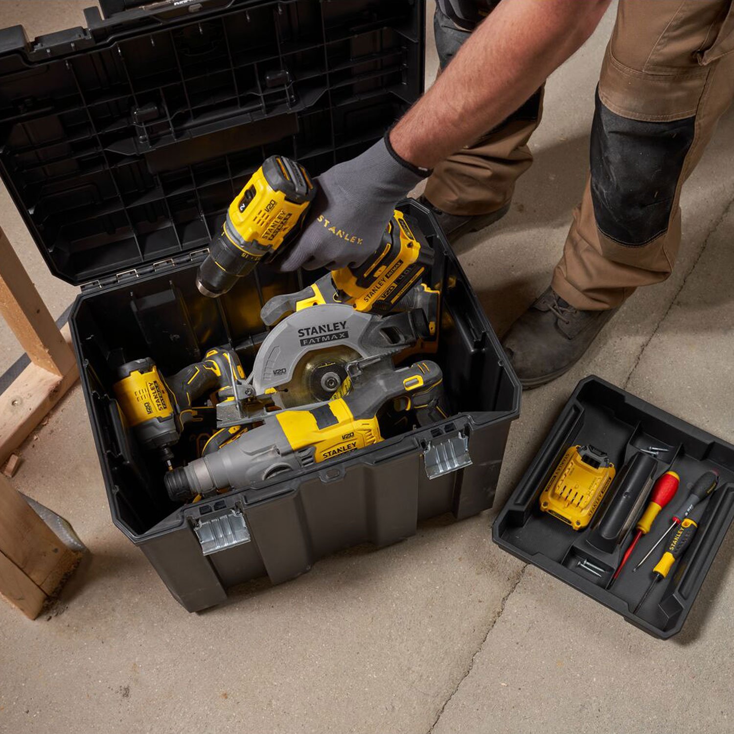 A Caixa de Armazenamento Móvel FATMAX® PRO-STACK™ FMST1-75753 é a solução ideal para quem precisa de organização, mobilidade e robustez para guardar ferramentas elétricas e acessórios de grande porte no dia a dia de trabalho. Parte do sistema FATMAX® PRO-STACK™, essa caixa permite combinar módulos e criar um sistema de armazenamento personalizado, garantindo praticidade e eficiência em oficinas, canteiros de obra e ambientes profissionais.