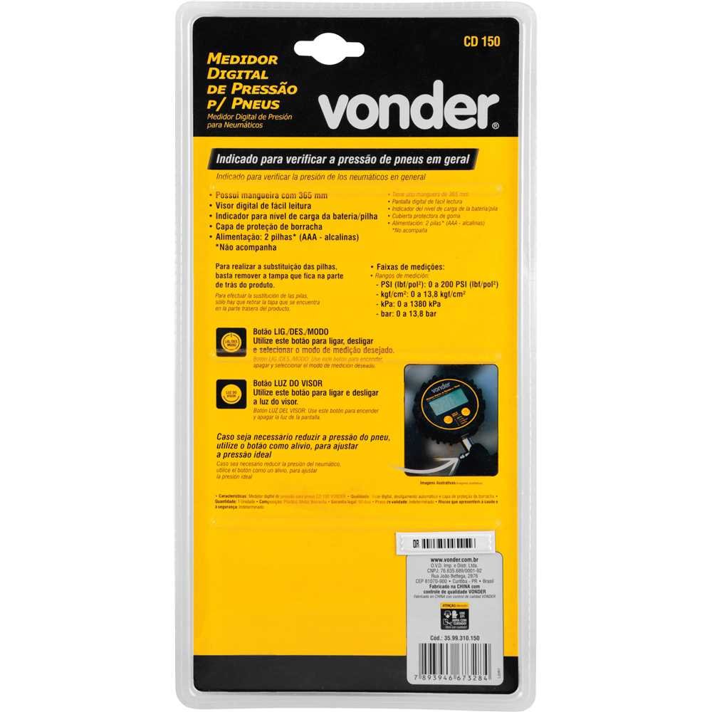 1 Calibrador de Pneus Digital Vonder CD 150.