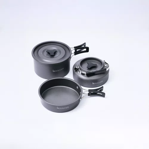 O Conjunto de Panelas Camping 2 a 3 Pessoas com Chaleira Ultraleve Hawapi é ideal para quem busca praticidade e versatilidade no preparo de refeições em atividades outdoor. Desenvolvido para atender até três pessoas, reúne os principais utensílios para cozinhar com eficiência em acampamentos, trilhas e viagens, proporcionando uma experiência completa em qualquer ambiente.