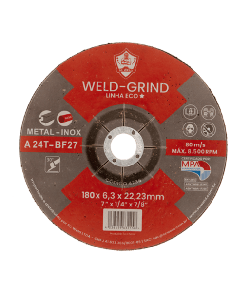 Disco De Desbaste 7 Pol. 180X6,3X22mm Eco Grind - 4236 - SC WELD