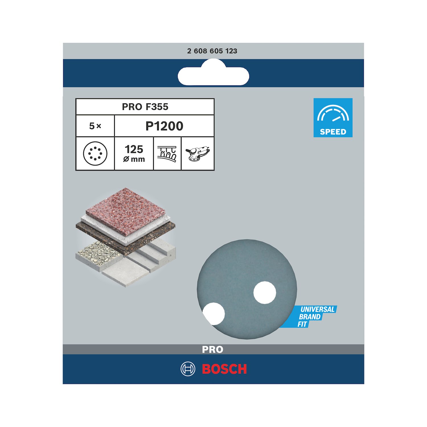 5 Discos de Lixa Velcro 125mm Bosch F355 G1200.