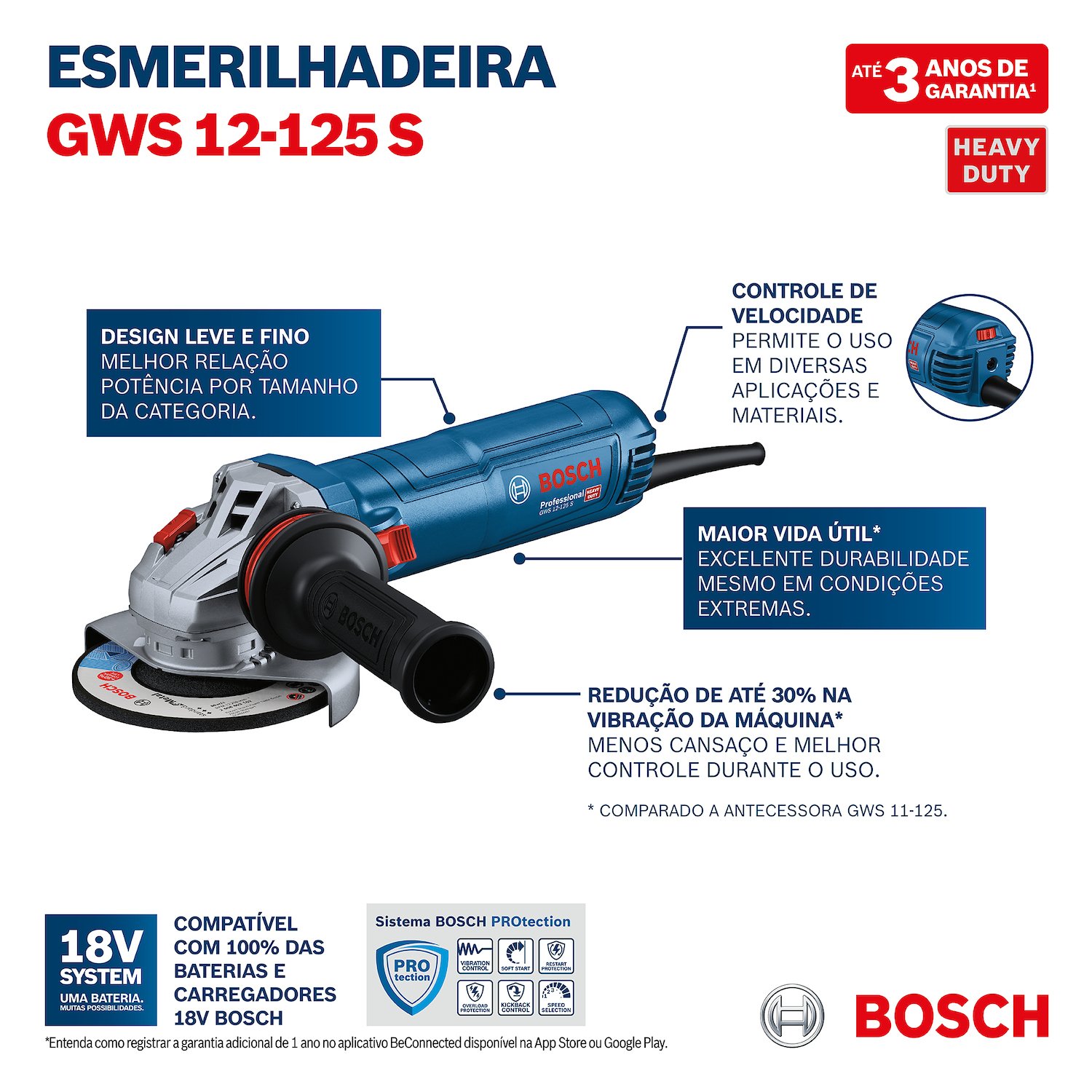 Garantia: 1 ano oferecido pelo fabricante, com possibilidade de 1 ano adicional mediante cadastro no aplicativo Bosch BeConnected