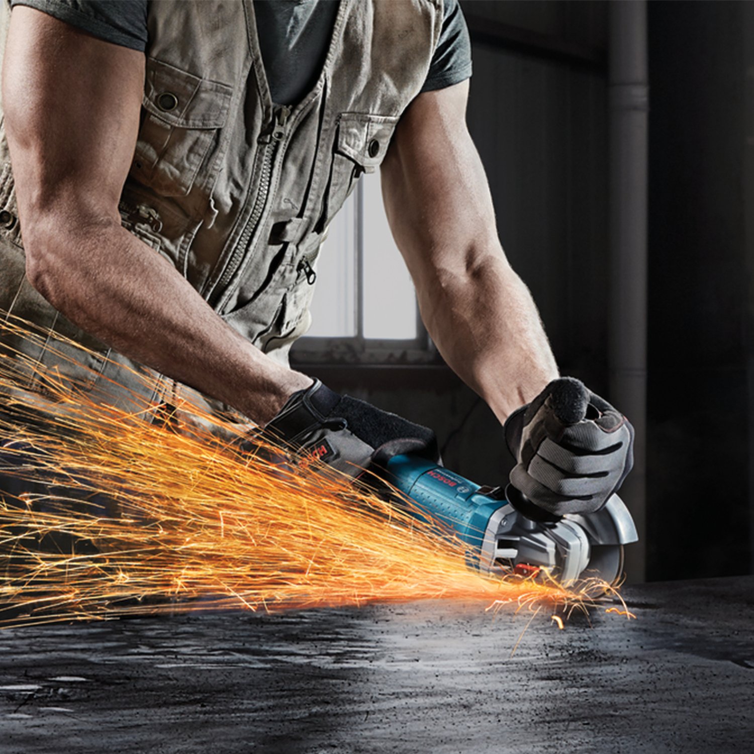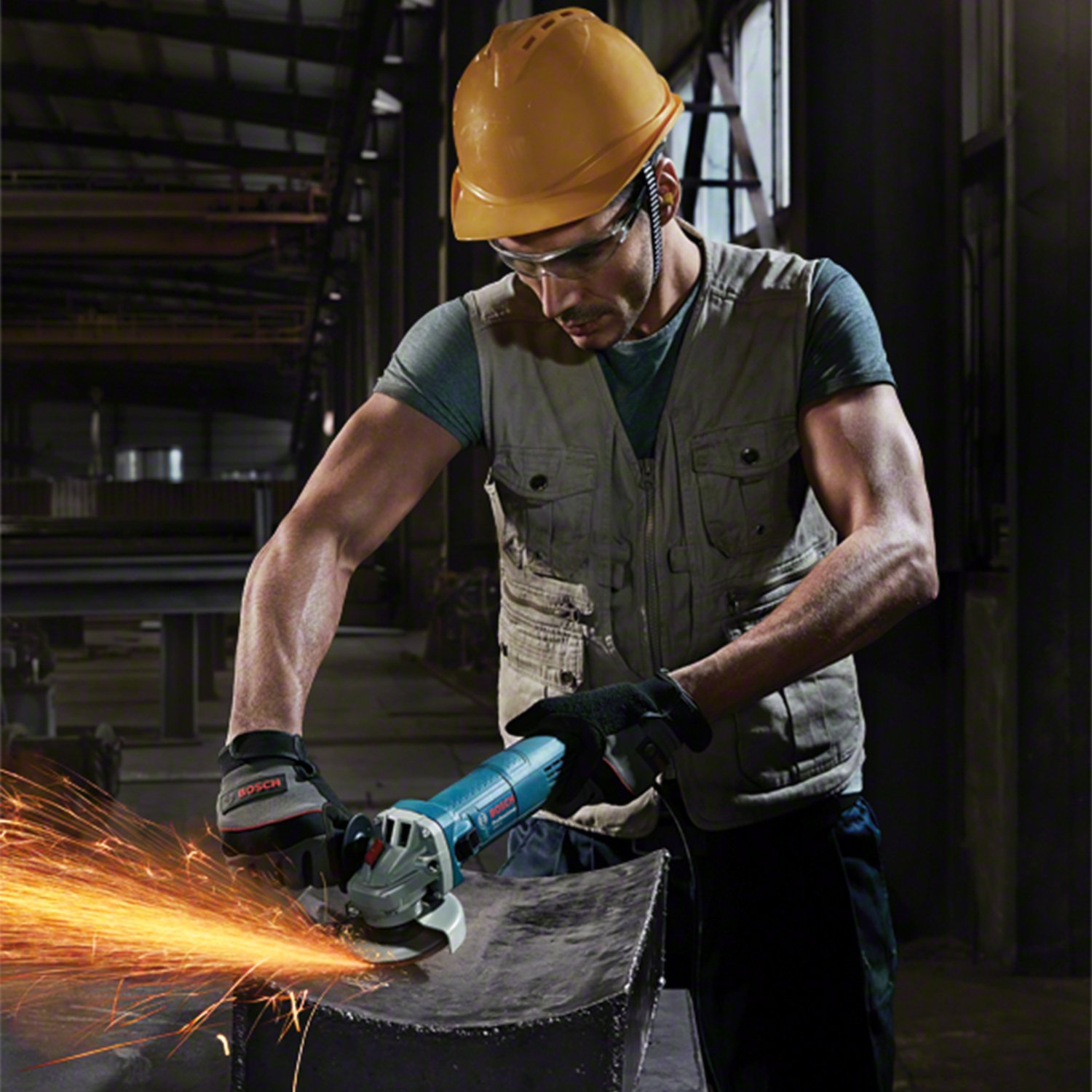 A GWS 9-125 S conta com capa de proteção de 125 mm com sistema de fixação por parafuso, que impede o deslocamento em caso de rompimento do disco, aumentando a segurança do operador.
