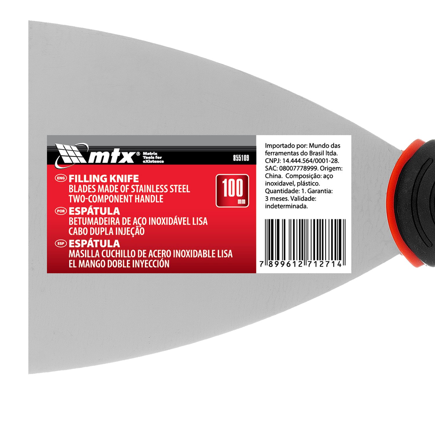 1 Espátula Aço Inoxidável Cabo PVC 100mm MTX.