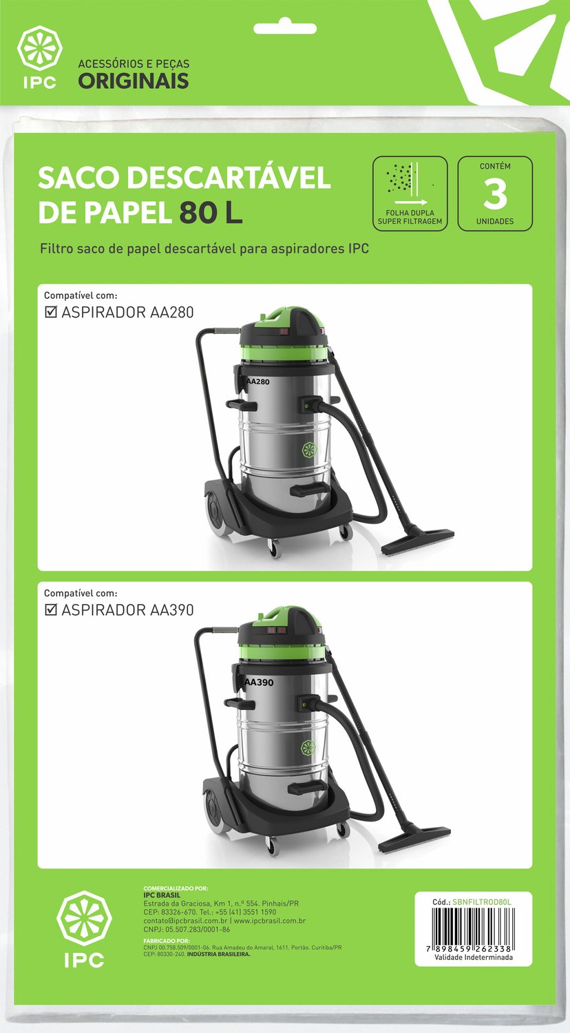 Filtro Descartável 80L Pct 3 Un SBNFILTROD80L IPC BRASIL são indicados para aspiradores de pós Aspiracar 80, AA280, AA390.