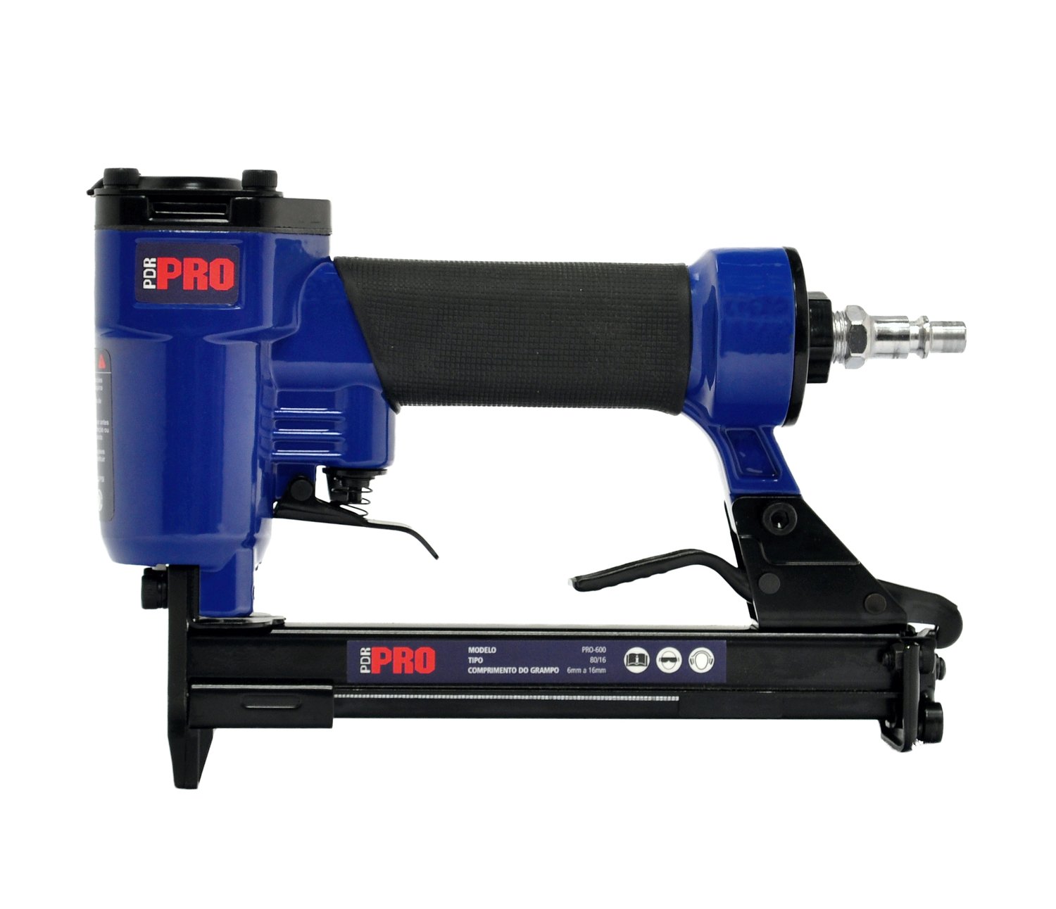 O Grampeador Pneumático 6 a 16mm Grampo 80/16 PRO-600 PDR é Indicado para estofarias, indústrias moveleiras, esquadrias, artesanatos, embalagens e quadros.