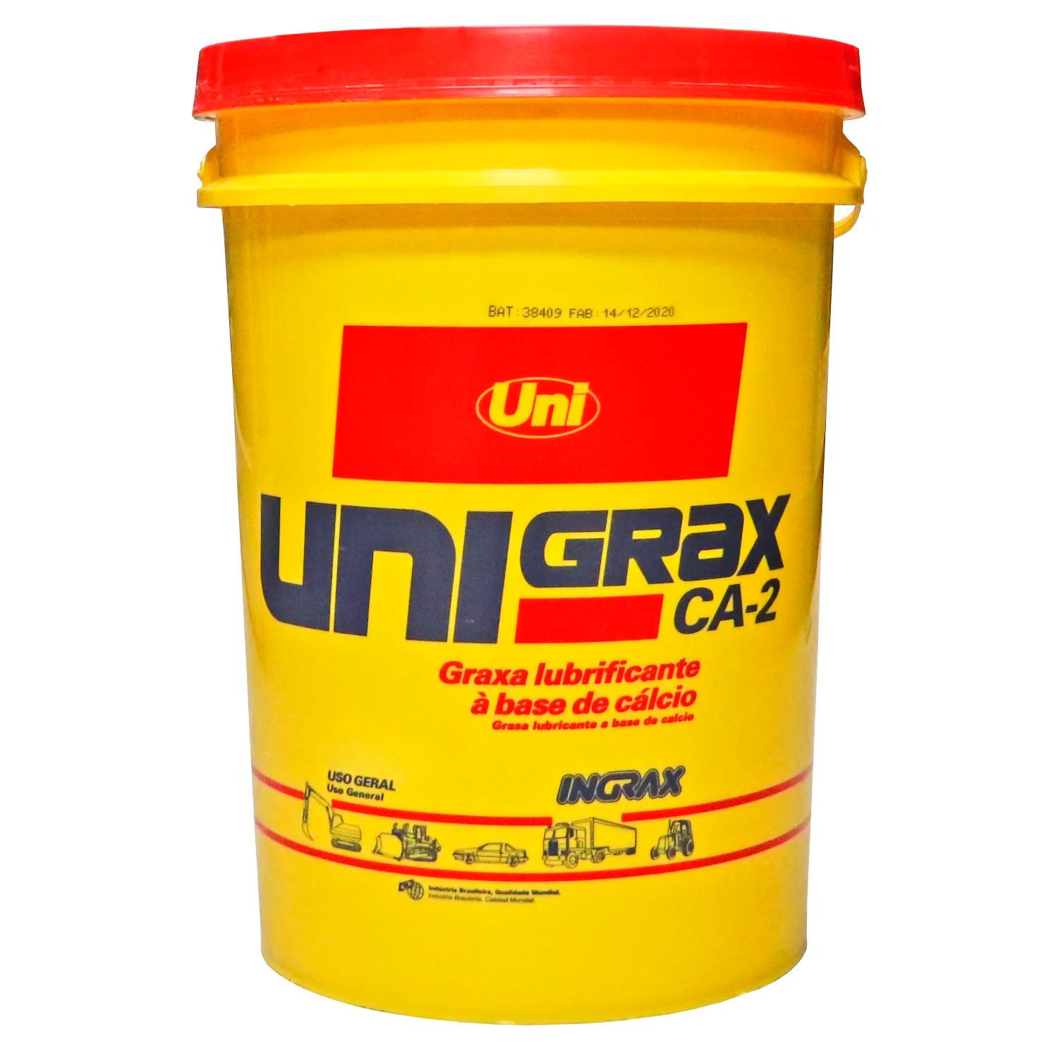 A Graxa Unigrax CA-2 é uma graxa de cálcio hidrorepelente, formulada com óleo de alta viscosidade e adesividade. Possui coloração castanha escura e é indicada para lubrificação de articulações de chassis de caminhões, automóveis, tratores, motocicletas, máquinas agrícolas e mancais de deslizamento.