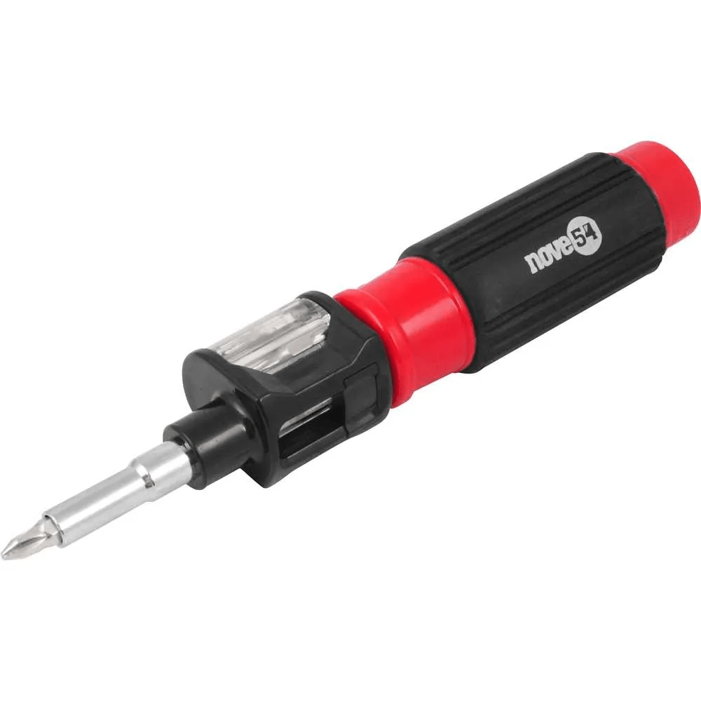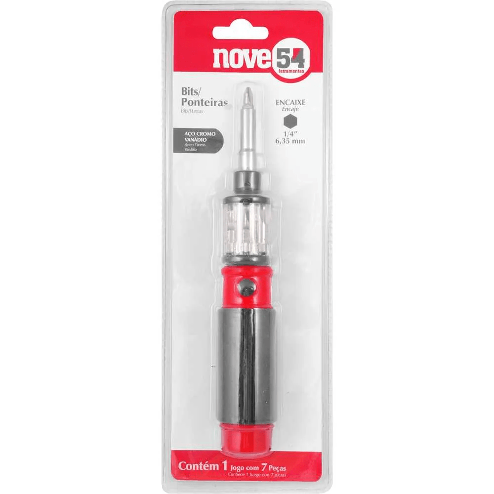 O Jogo de Bits 7pçs NOVE54 com Suporte é a solução prática e resistente para quem busca eficiência ao apertar ou soltar parafusos no dia a dia. Produzido em aço cromo vanádio com acabamento cromado, garante alta durabilidade e proteção contra oxidação, sendo ideal para uso doméstico e profissional. O encaixe sextavado 1/4” (6,35 mm) proporciona firmeza e compatibilidade com diversas ferramentas, facilitando qualquer tarefa de fixação. Compacto, versátil e completo, o Jogo de Bits 7pçs NOVE54 é indispensável na sua caixa de ferramentas.