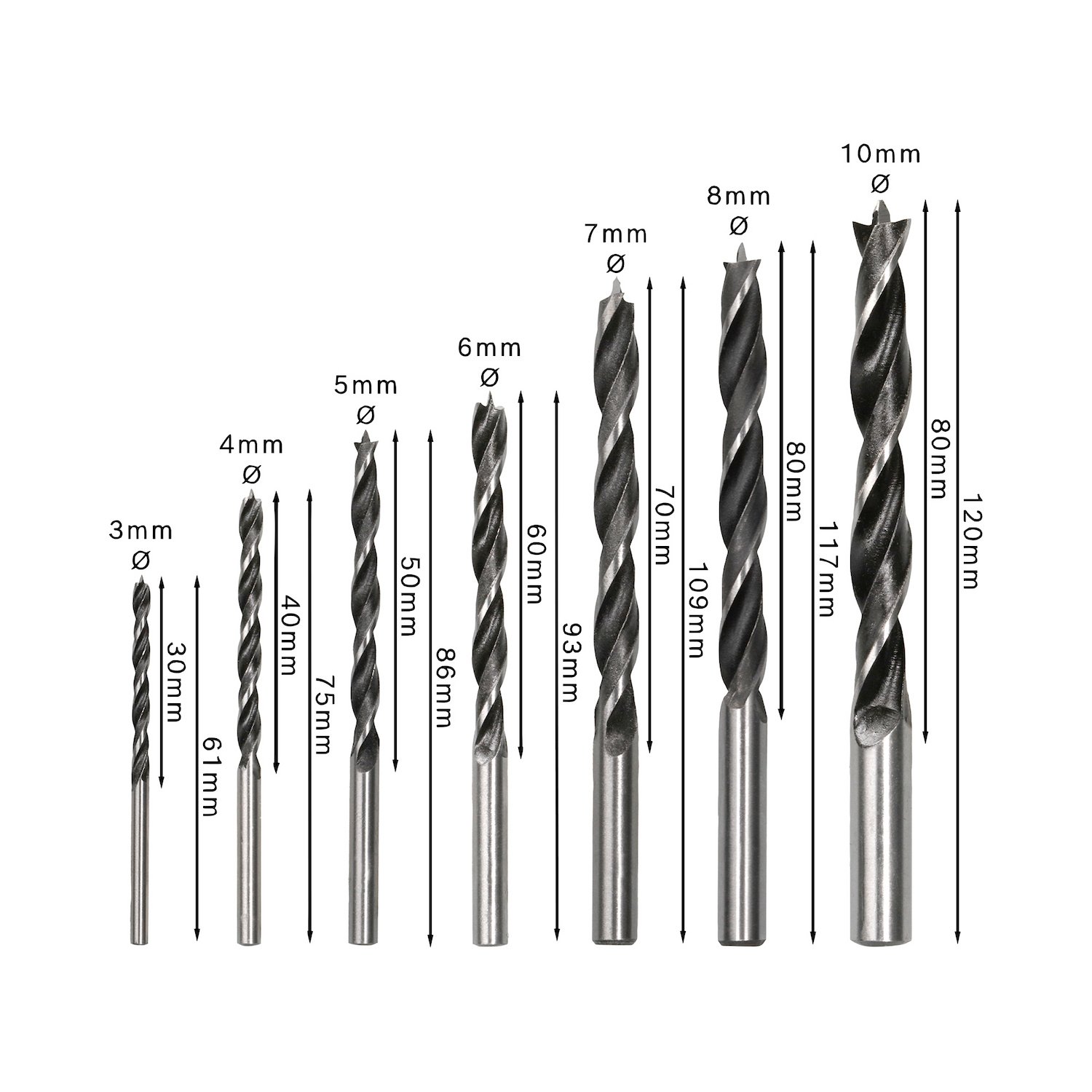 7 Brocas para madeira 3 pontas nos diâmetros especificados