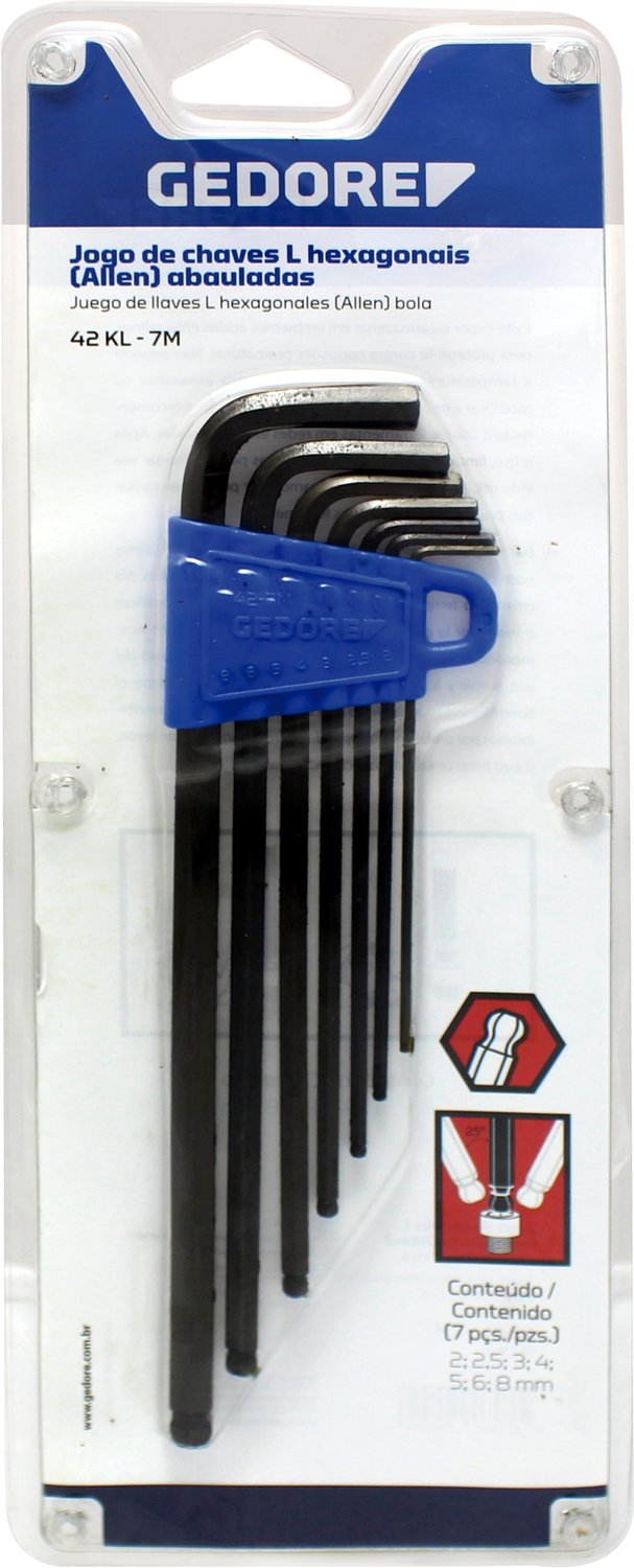 Jogo de Chaves Allen Longas Abauladas Pol. GEDORE 42 KL-88P – Precisão, alcance e torque profissional.