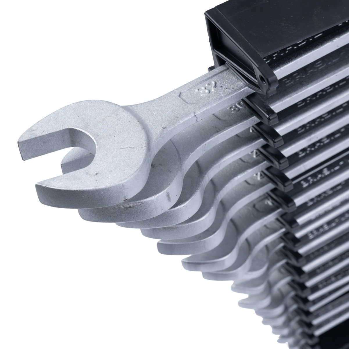 Com design ergonômico, a posição da boca a 15° facilita o acesso em áreas de difícil alcance, enquanto a cabeça estrela também inclinada em 15° garante firmeza e precisão no aperto e desaperto de parafusos e porcas. Além disso, o jogo acompanha suporte especial GEDORE Red, que organiza e facilita o transporte das ferramentas.