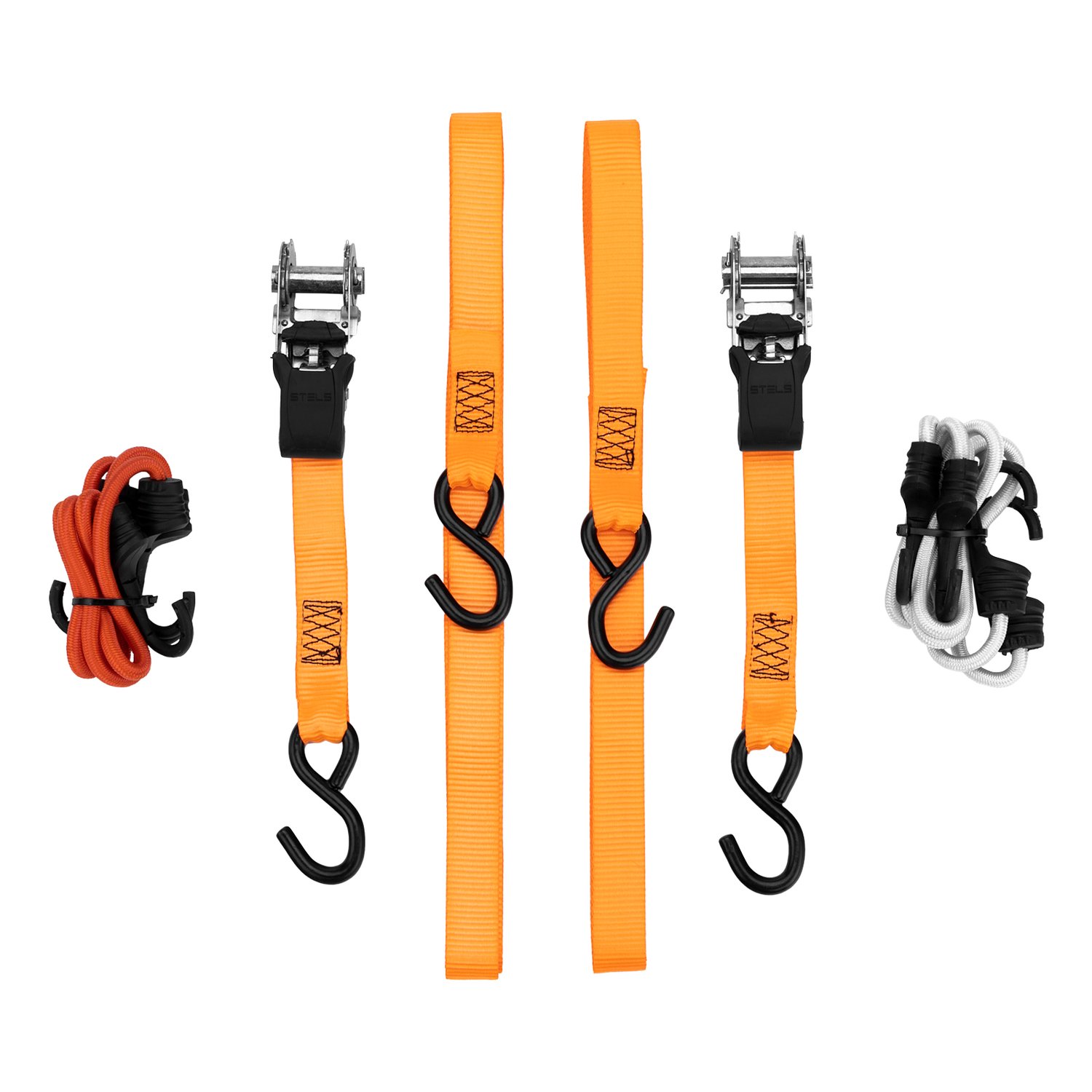 O Jogo de Cinta e Catraca para Amarração 18mm Stels 5440355 é a solução prática e segura para quem precisa transportar cargas com estabilidade e confiança. Composto por 5 peças, o conjunto inclui cintas com catraca e elásticos com ganchos, oferecendo versatilidade para diferentes tipos de fixação. Ideal para uso em viagens, mudanças ou transporte profissional, o jogo de cinta e catraca Stels garante que tudo fique no lugar, sem riscos de deslocamento. Produzido em poliéster resistente e borracha de alta qualidade, ele suporta até 680 kg, com ganchos reforçados que não entortam mesmo sob esforço pesado. Compacto, leve e eficiente, o jogo de cinta com catraca é indispensável em qualquer porta-malas ou baú de ferramentas.