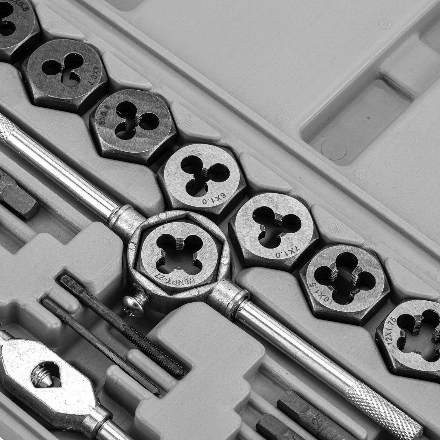 O conjunto inclui porta-machos, porta-cossinetes e tamanhos variados de M3 até M12, garantindo mais versatilidade e adaptação em qualquer situação. Tudo isso embalado numa maleta resistente que facilita a organização, o transporte e o uso no dia a dia. Com o Jogo de Cossinete e Machos SPARTA, você faz o serviço certo, com agilidade, segurança e qualidade.