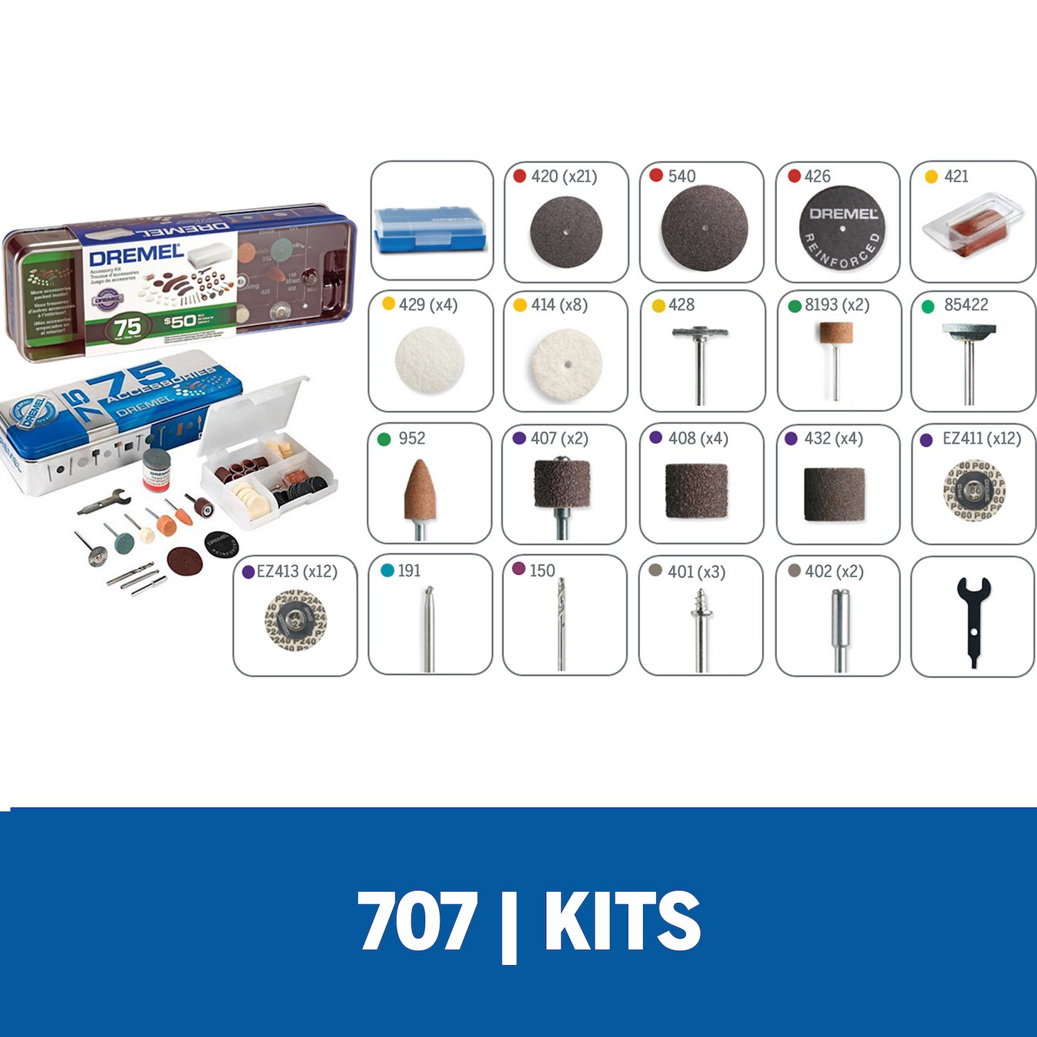 Além da variedade de acessórios, o Kit de acessórios de 75 peças Dremel (707-01) conta com uma caixa de armazenamento reutilizável com bandeja organizadora removível, mantendo tudo no lugar e fácil de acessar. O kit inclui discos de corte, discos de lixa, cintas de lixa, pedras de esmerilhar, discos de polir, mandris, chave, pasta de polimento e muito mais, oferecendo versatilidade para qualquer projeto com rapidez e segurança.