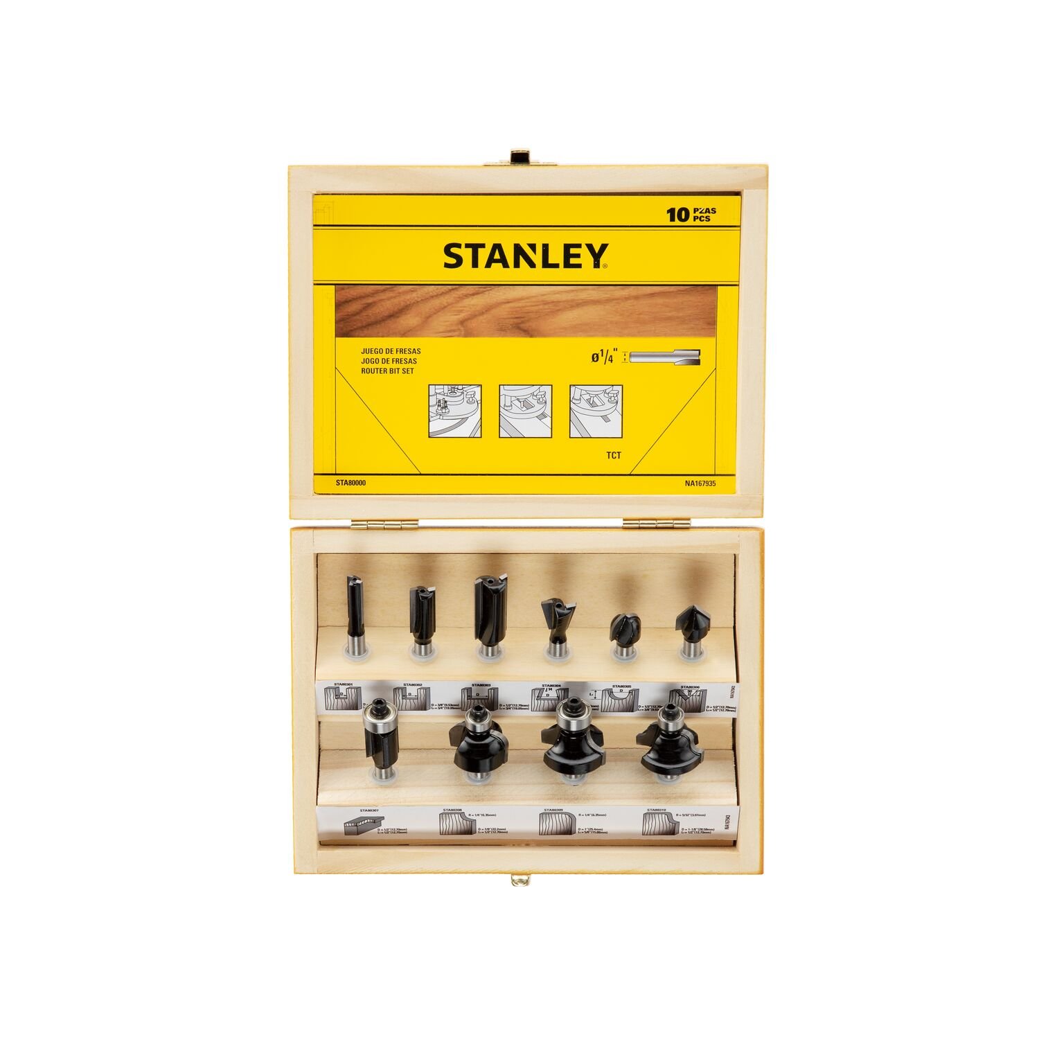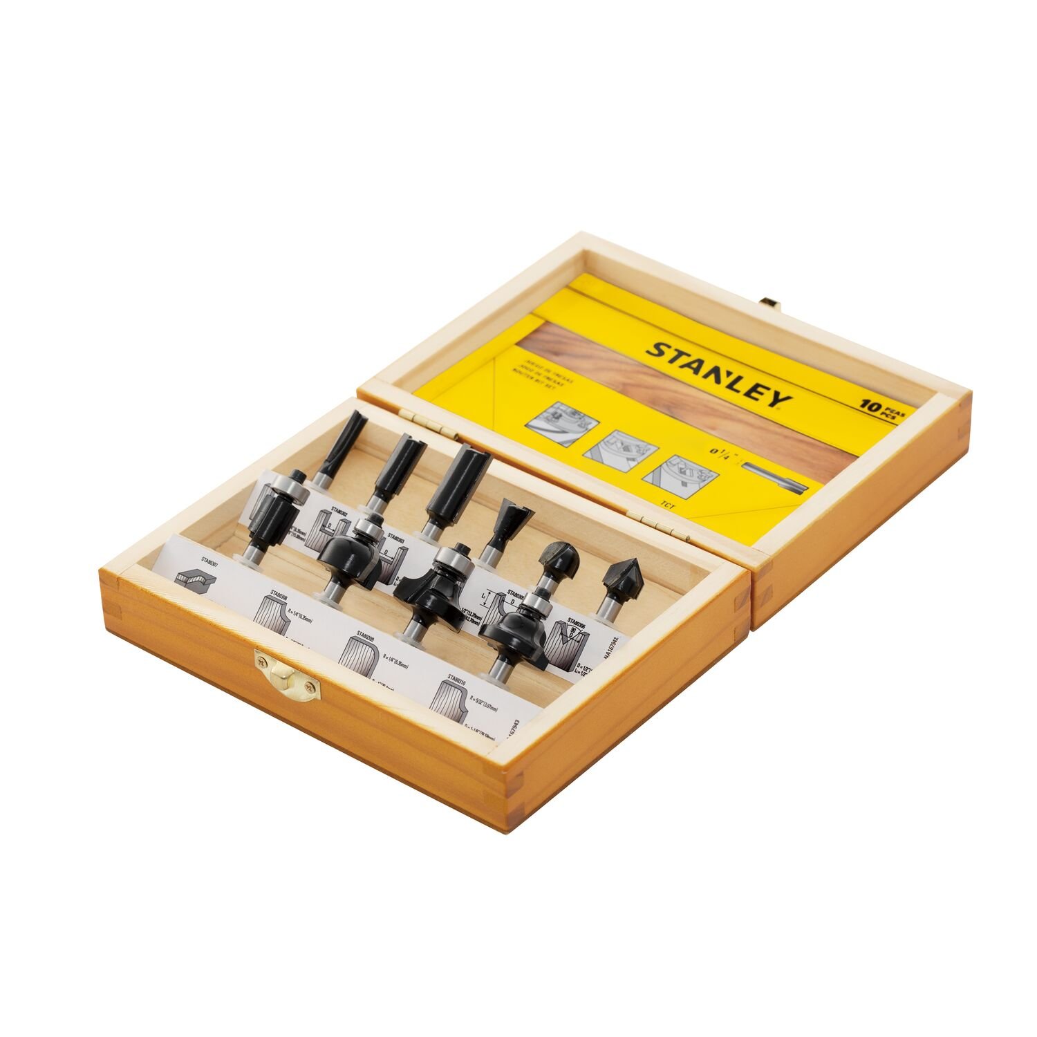 O Kit de Fresas para Tupia Stanley STA80000 é um conjunto completo de acessórios projetados para trabalhos diversos em madeira com precisão e acabamento profissional. Com 10 fresas com haste de 1/4″, este kit oferece versatilidade para executar cortes, ranhuras, juntas, bordas decorativas e encaixes, tornando-se ideal tanto para marceneiros quanto para entusiastas de carpintaria.