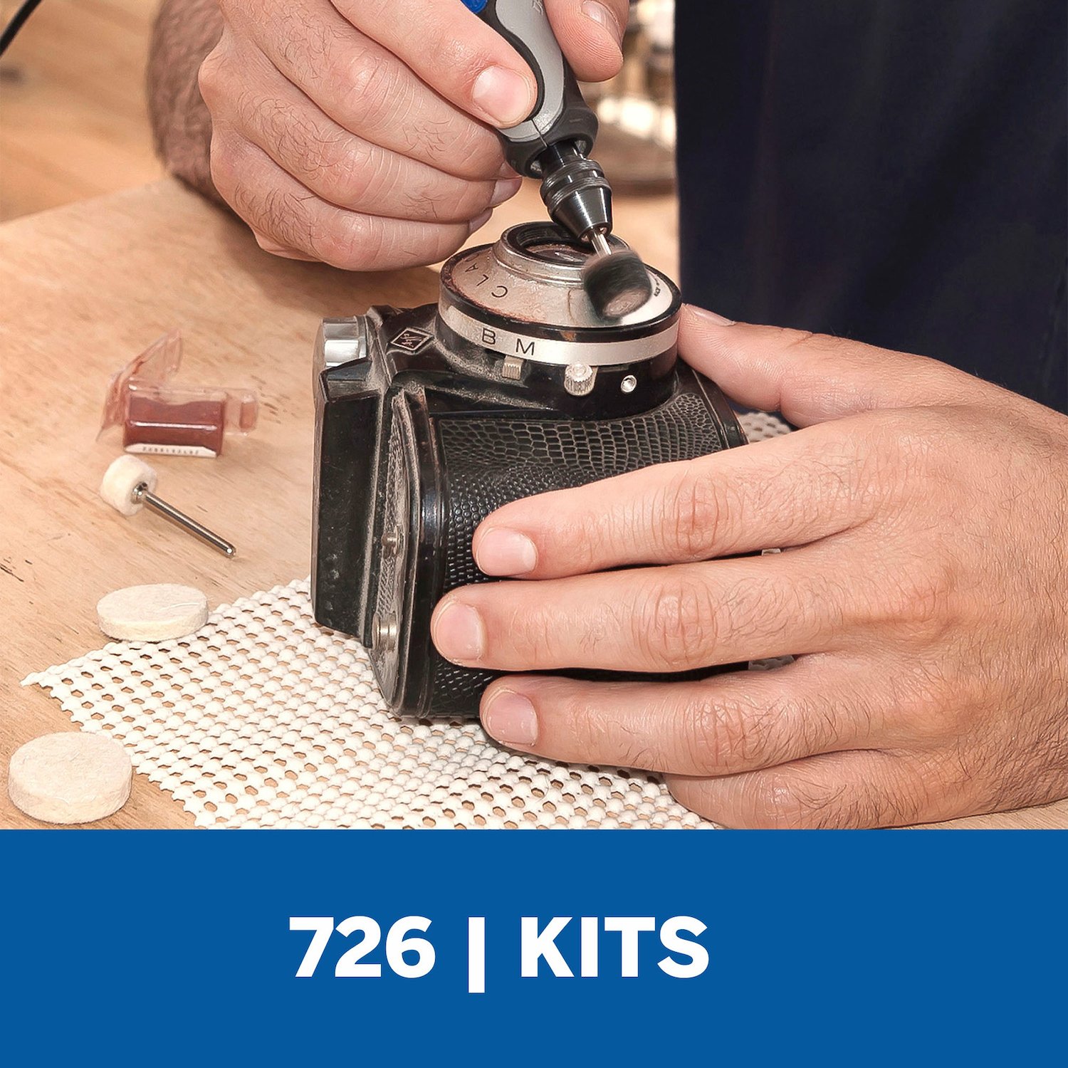 Ideal para retoques finos, acabamento de peças e polimento em materiais variados, ele vem com uma seleção estratégica de escovas e discos abrasivos com diferentes granulações, além da tradicional pasta de polir da Dremel.