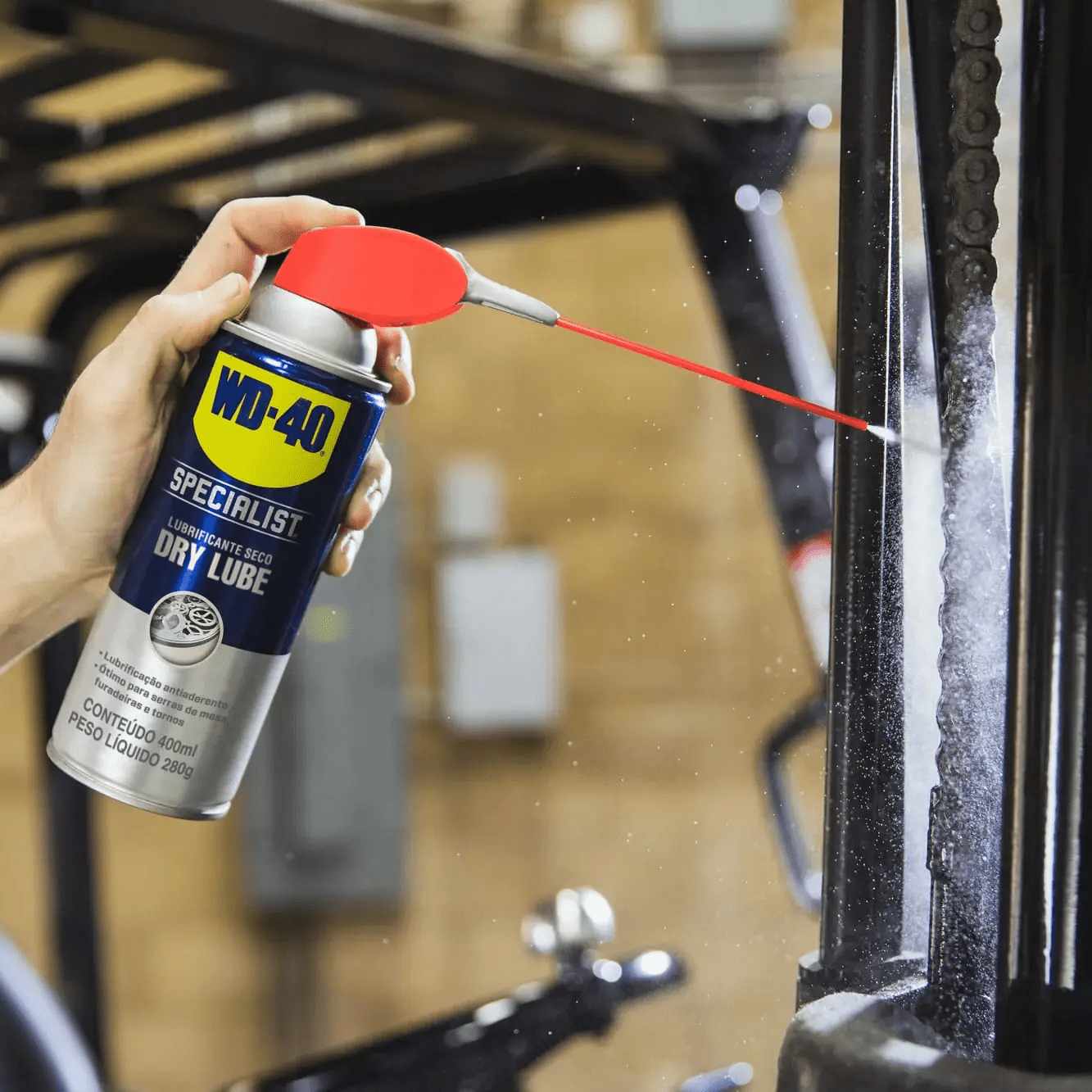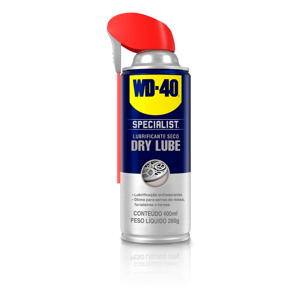 O Lubrificante a Seco Spray 400ml WD-40 Specialist Dry Lube é ideal pra quem precisa de lubrificação eficiente sem deixar sujeira nem resíduos oleosos. Sua fórmula com PTFE forma uma película seca que reduz o atrito e o desgaste, garantindo fluidez nos movimentos e proteção duradoura contra a corrosão.