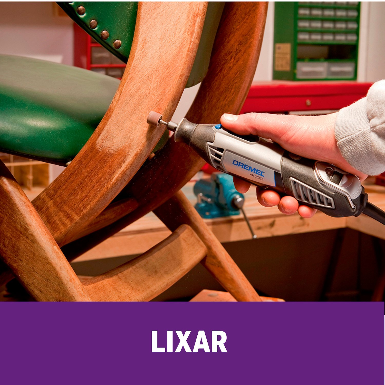 A Micro Retífica Dremel 4000 entrega 175W de potência e motor de alto desempenho, ela realiza as tarefas mais pesadas com estabilidade, mantendo o torque mesmo em velocidades mais baixas, perfeito pra cortes, lixamentos, polimentos e outras demandas.