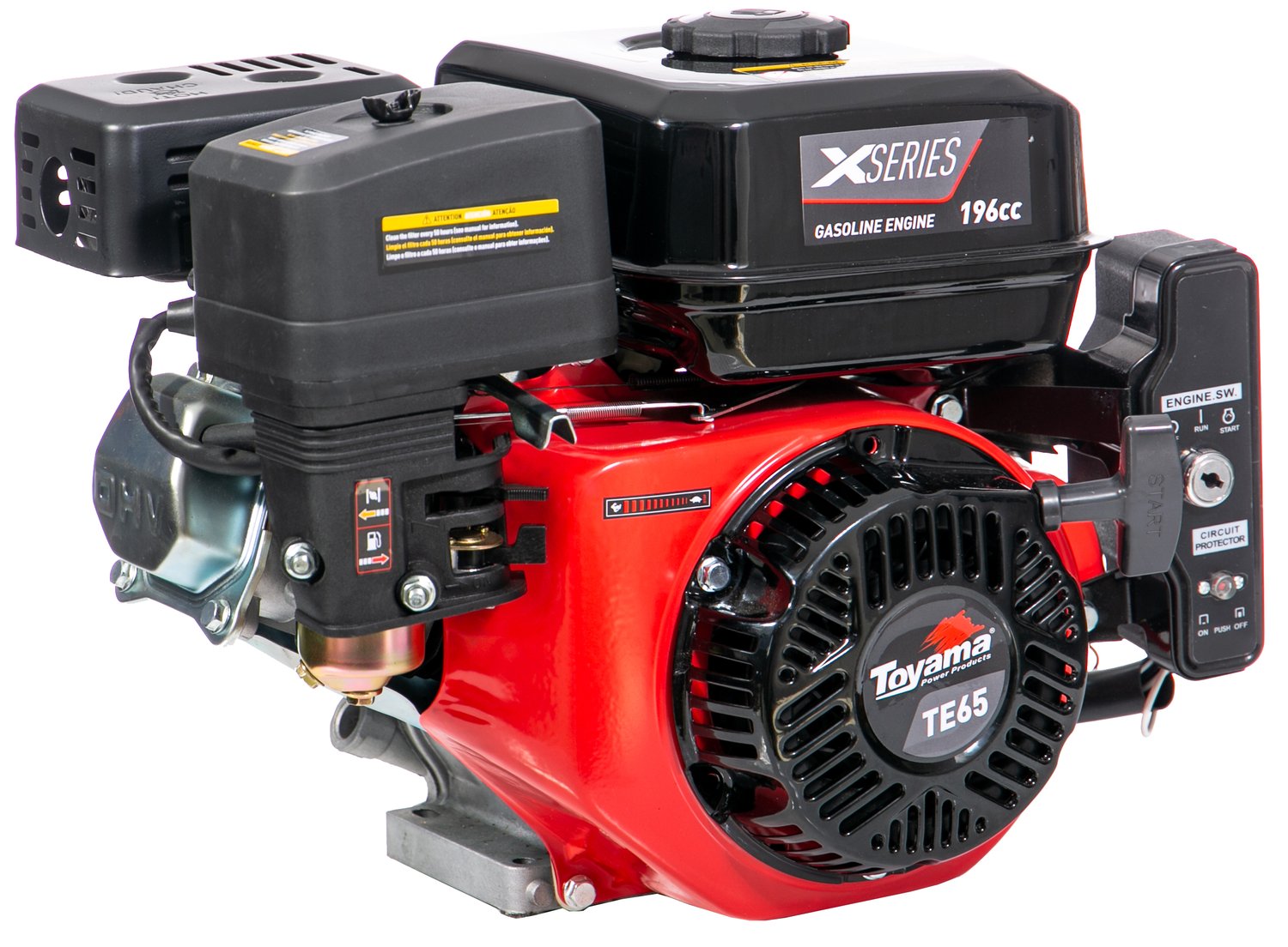O Motor a Gasolina 6,5HP C/ Partida Elétrica TE65EKX Toyama oferece 6,5 HP de potência máxima, sendo ideal para equipamentos de jardinagem, agrícola e pecuária de pequeno porte. Com eixo virabrequim chavetado, é um motor multiuso, permitindo sua adaptação em diversos tipos de máquinas.