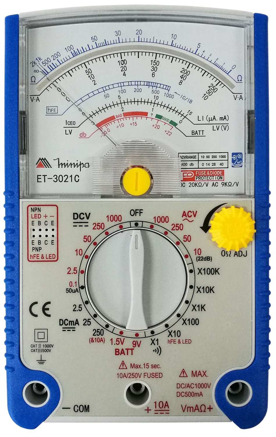 1 Multímetro Analógico 500 - 1000V Ac/Dc, Teste Continuidade, Diodo, Transistor ET-3021C Minipa