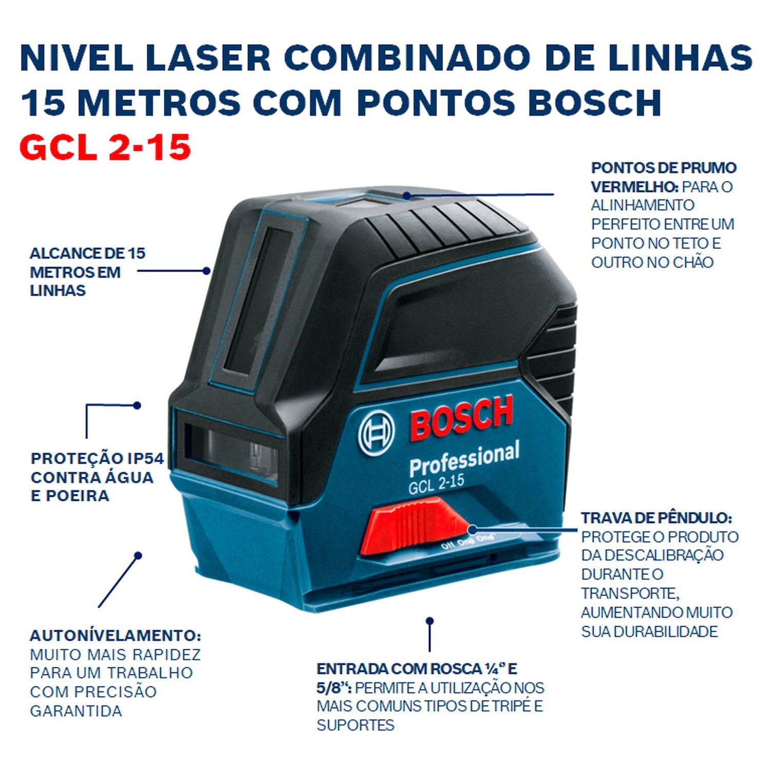 Nível a laser Bosch GCL 2-15, ideal para profissionais como instaladores, eletricistas, carpinteiros e outros que buscam precisão e praticidade em suas medições.