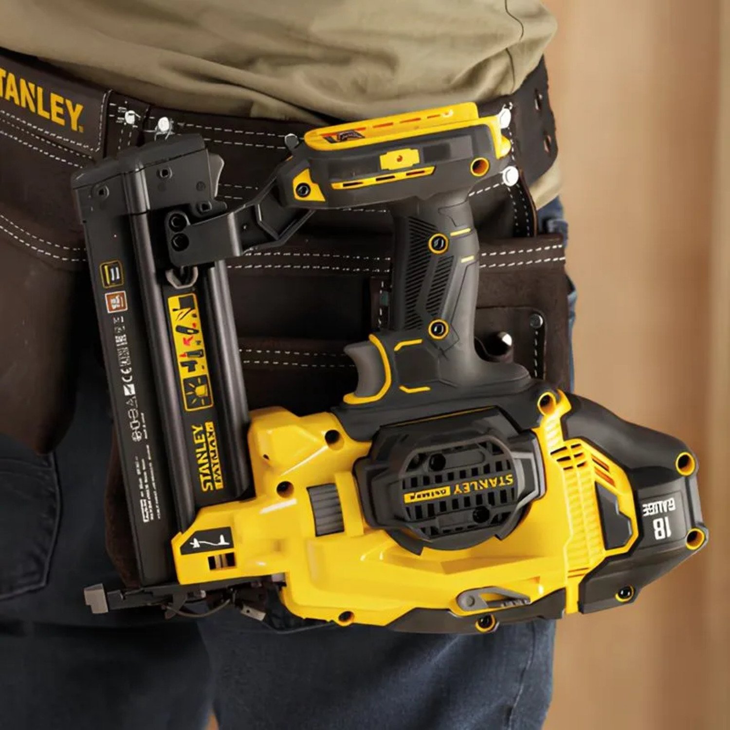 O Pinador 18G 20V Stanley oferece desempenho preciso com ponta sem marcas, removendo pinos facilmente e evitando danos nas superfícies. Com capacidade para 100 pinos e ajuste de profundidade sem ferramentas, é ideal para fixar pinos de 18G (16 a 50 mm) em madeira.