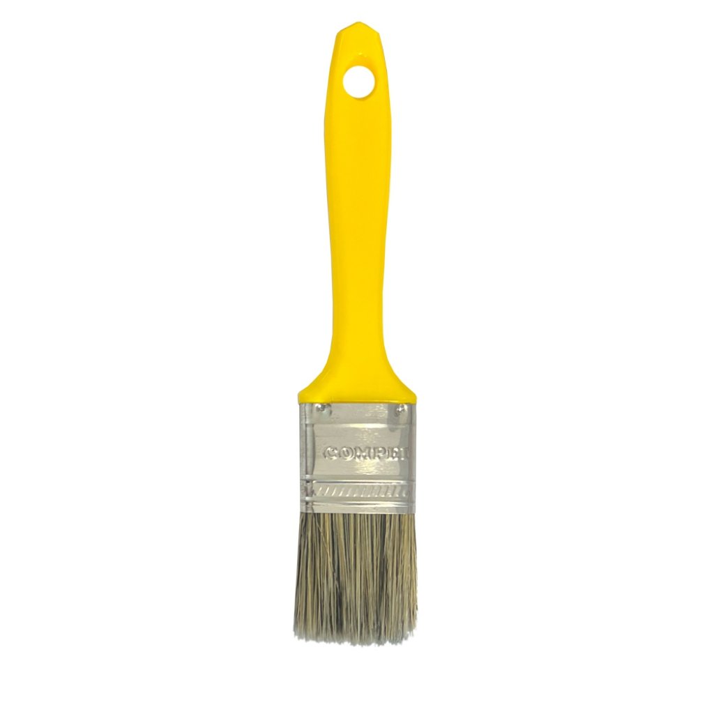 1 Pincel 1½" Cerdas Grisalhas com Cabo Plástico Amarelo.