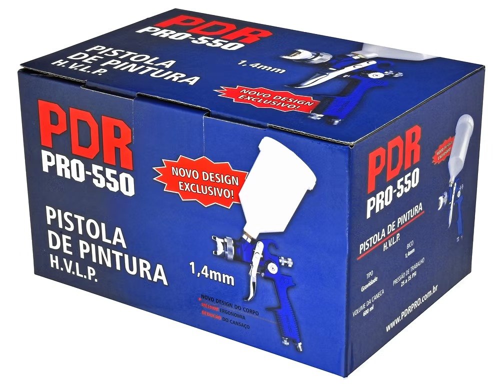A Pistola de Pintura Gravidade HVLP Bico 1,7mm 600ml PRO-550/1.7 Pdr é a escolha certa para quem busca um acabamento profissional em diferentes tipos de pintura. Leve, prática e com ótimo rendimento, ela garante aplicação uniforme de tintas e vernizes, reduzindo desperdícios e entregando um resultado impecável tanto em trabalhos automotivos quanto em projetos de marcenaria e móveis.