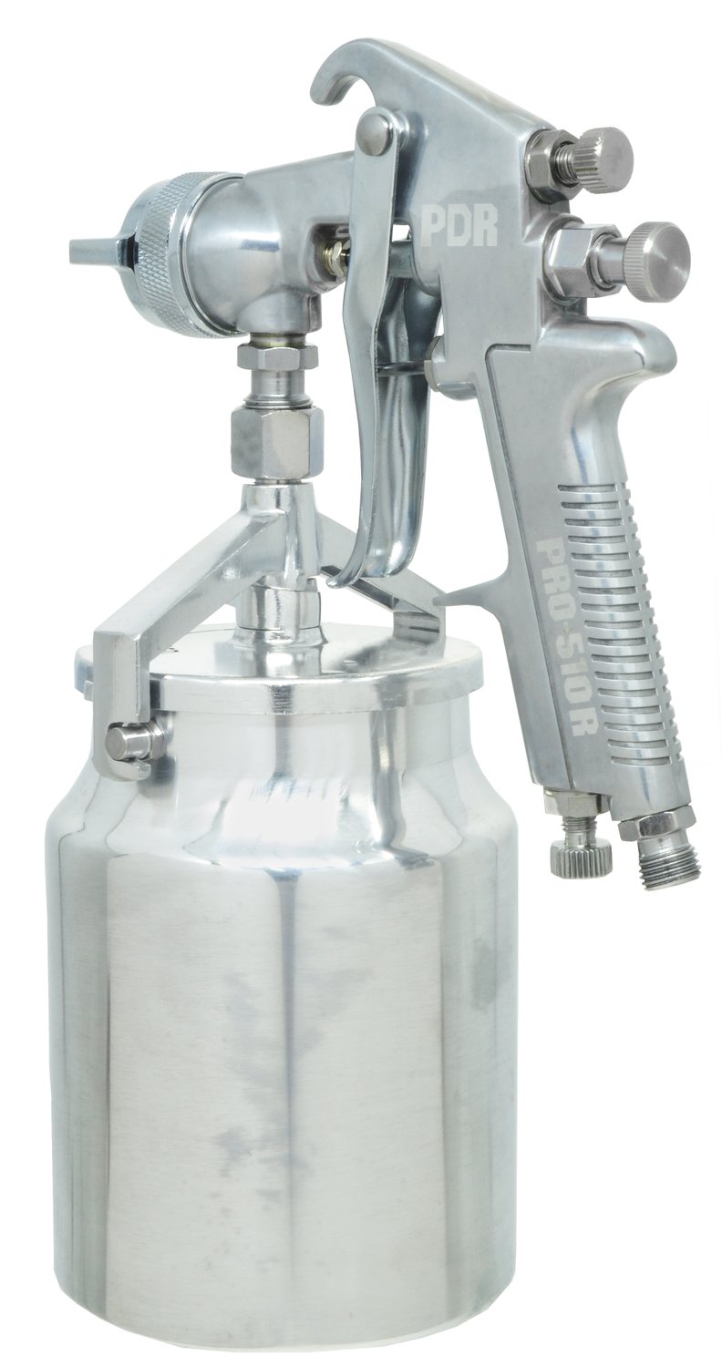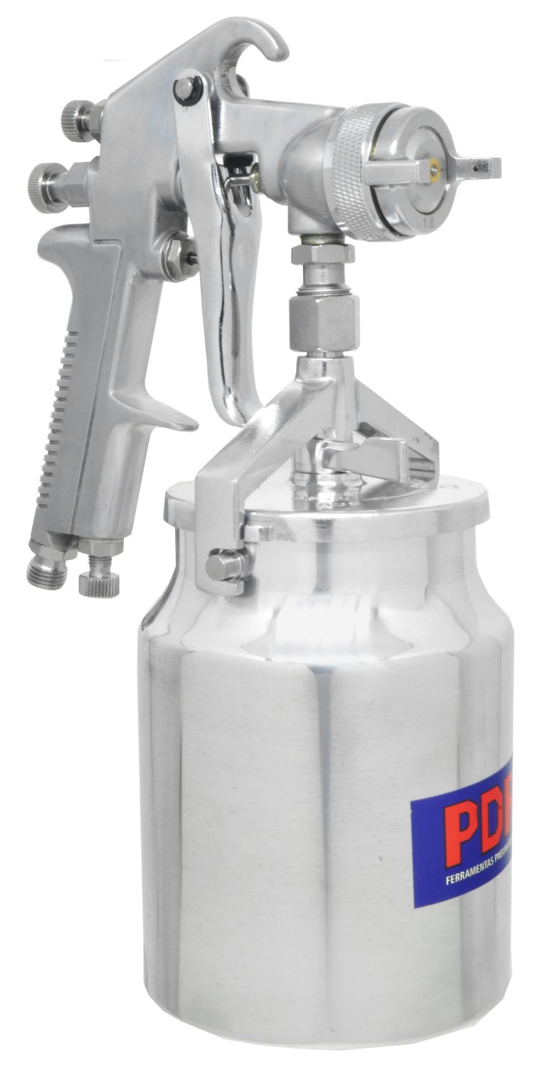 A Pistola Pintura Sucção Bico 1,8mm 1000ml PRO-510R/1.8 PDR é indicada para pinturas automotivas, moveleiras e têxteis.