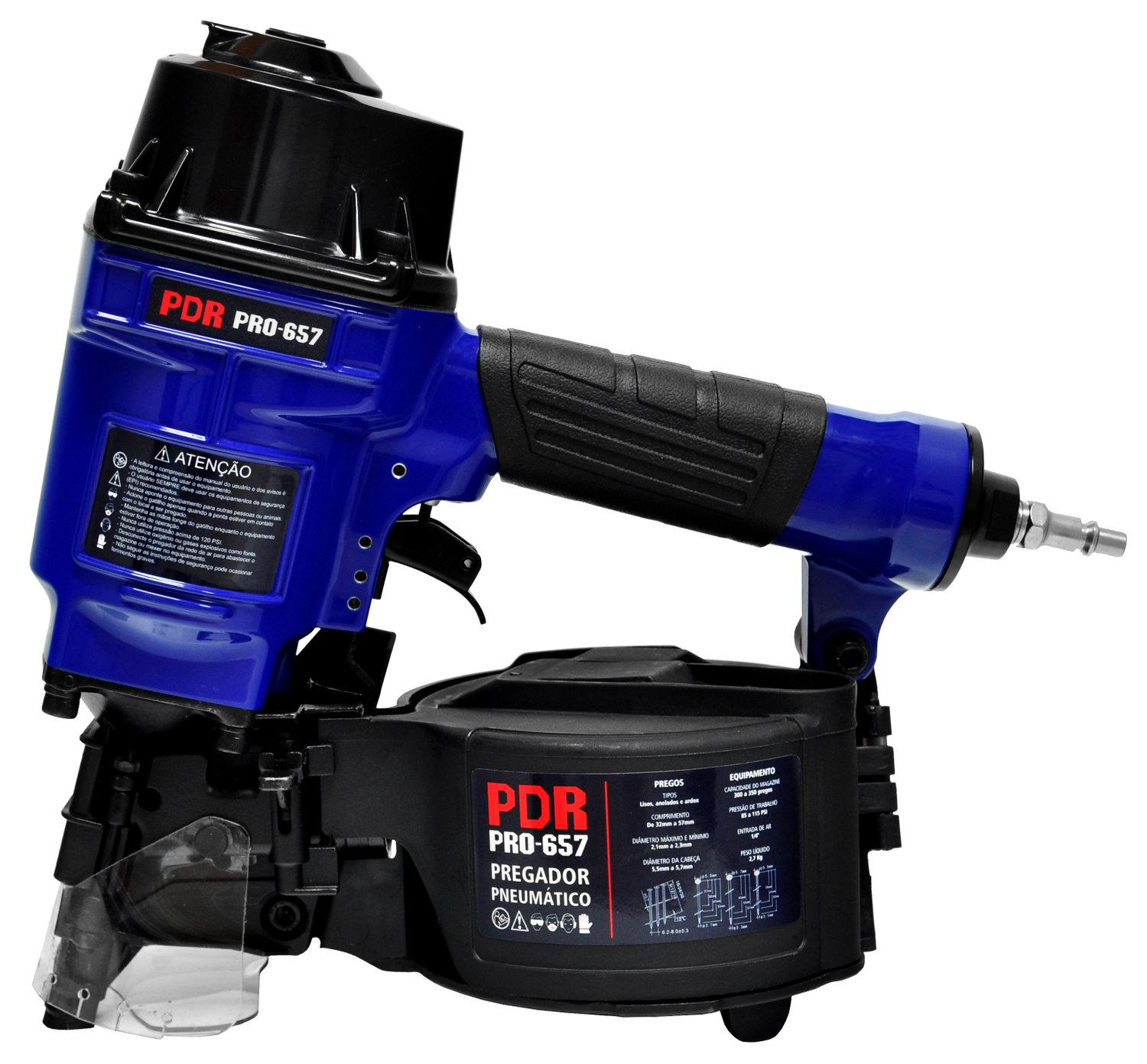 O Pregador Pneumático 32 a 57mm PRO-657 PDR é indicado para paletes de madeira, indústrias de embalagens, indústrias moveleiras, andaimes e tapumes de madeira, engradados, outdoors e fixação de madeiras em geral.