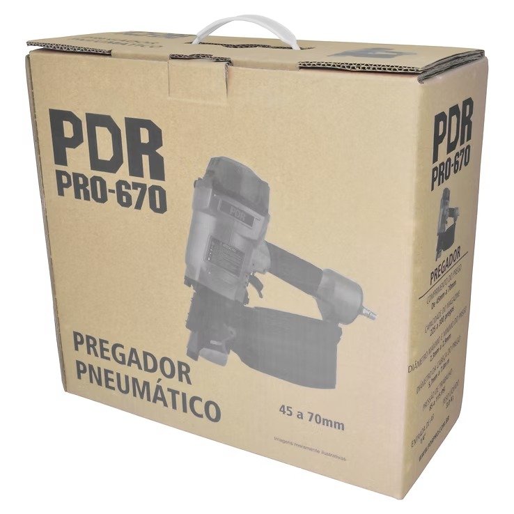 O Pregador Pneumático PRO-670 PDR 45 a 70mm é a ferramenta que descomplica o trabalho pesado na marcenaria, na montagem de pallets, tapumes, andaimes ou estruturas de madeira em geral. Com pressão de até 115 psi e capacidade para até 300 pregos, o pregador pneumático PRO-670 oferece agilidade, precisão e força pra quem precisa de resultado profissional no dia a dia. Compacto, robusto e fácil de manusear, ele entrega alto desempenho sem exigir esforço, ideal tanto para indústrias quanto para uso em campo.