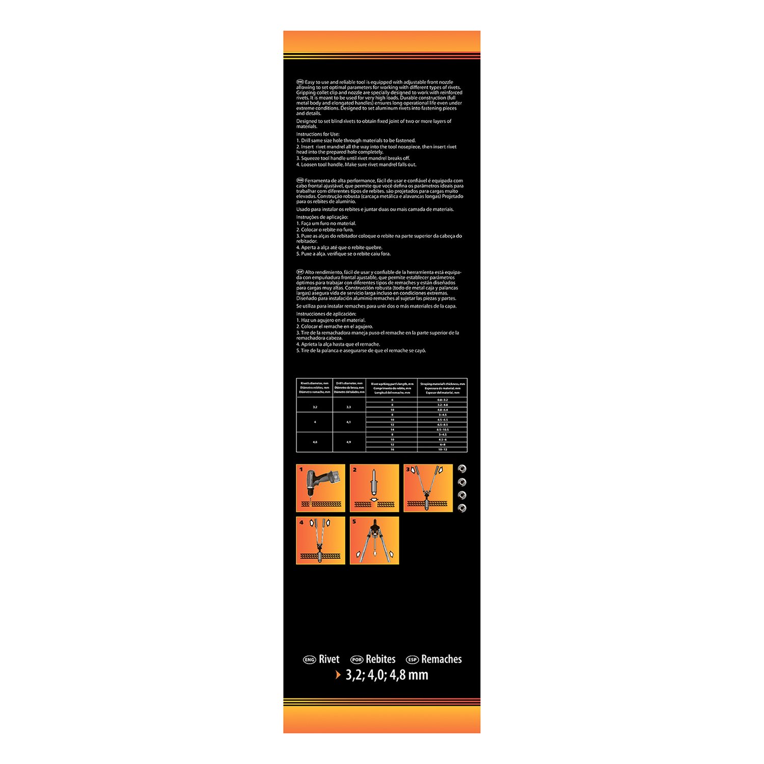 Diâmetros compatíveis de rebite: 3,2 mm, 4,0 mm e 4,8 mm