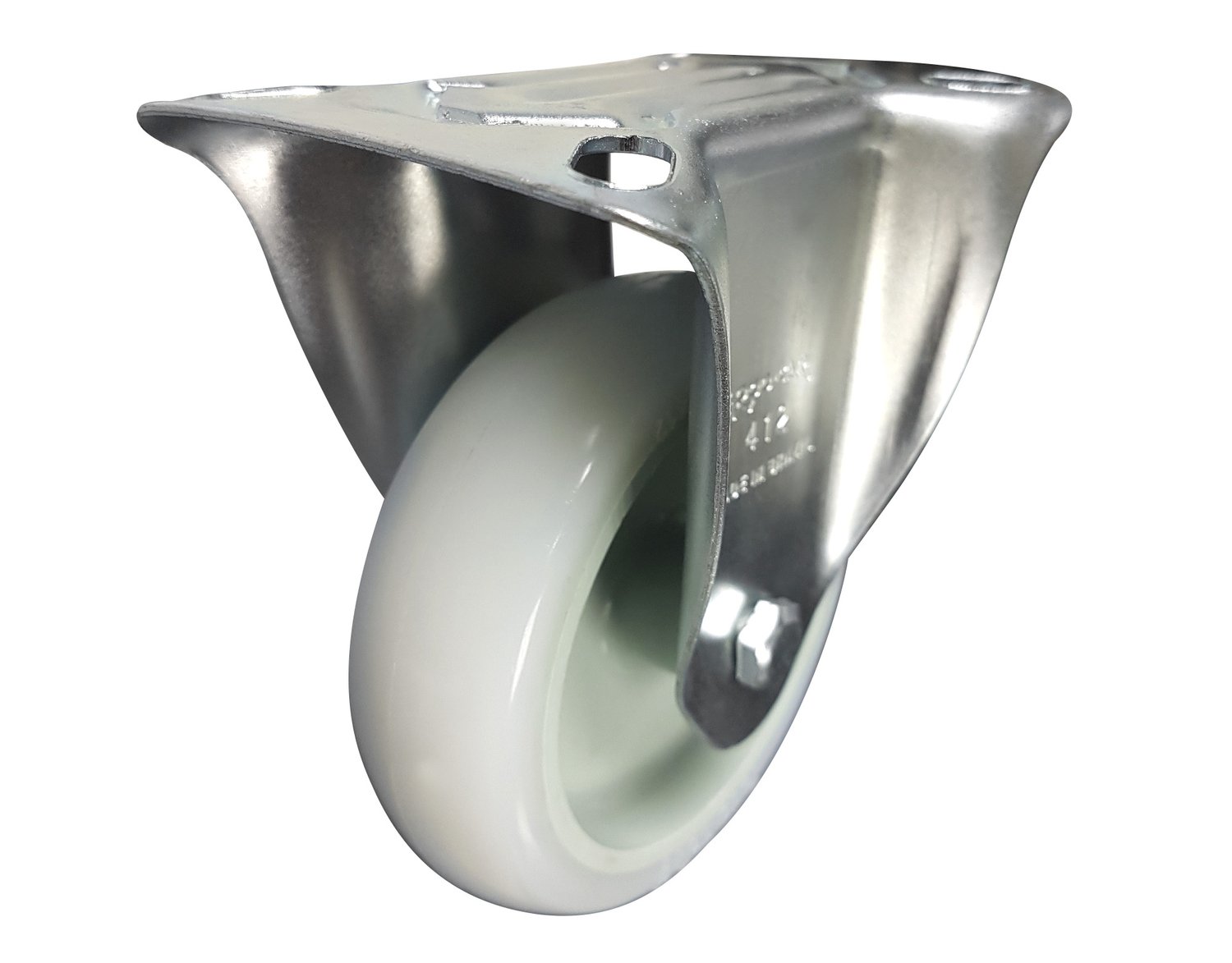 O Rodízio Fixo é ideal para cargas leves e moderadas com tração manual. Construído em chapa de aço estampado e zincado, com placa de fixação.