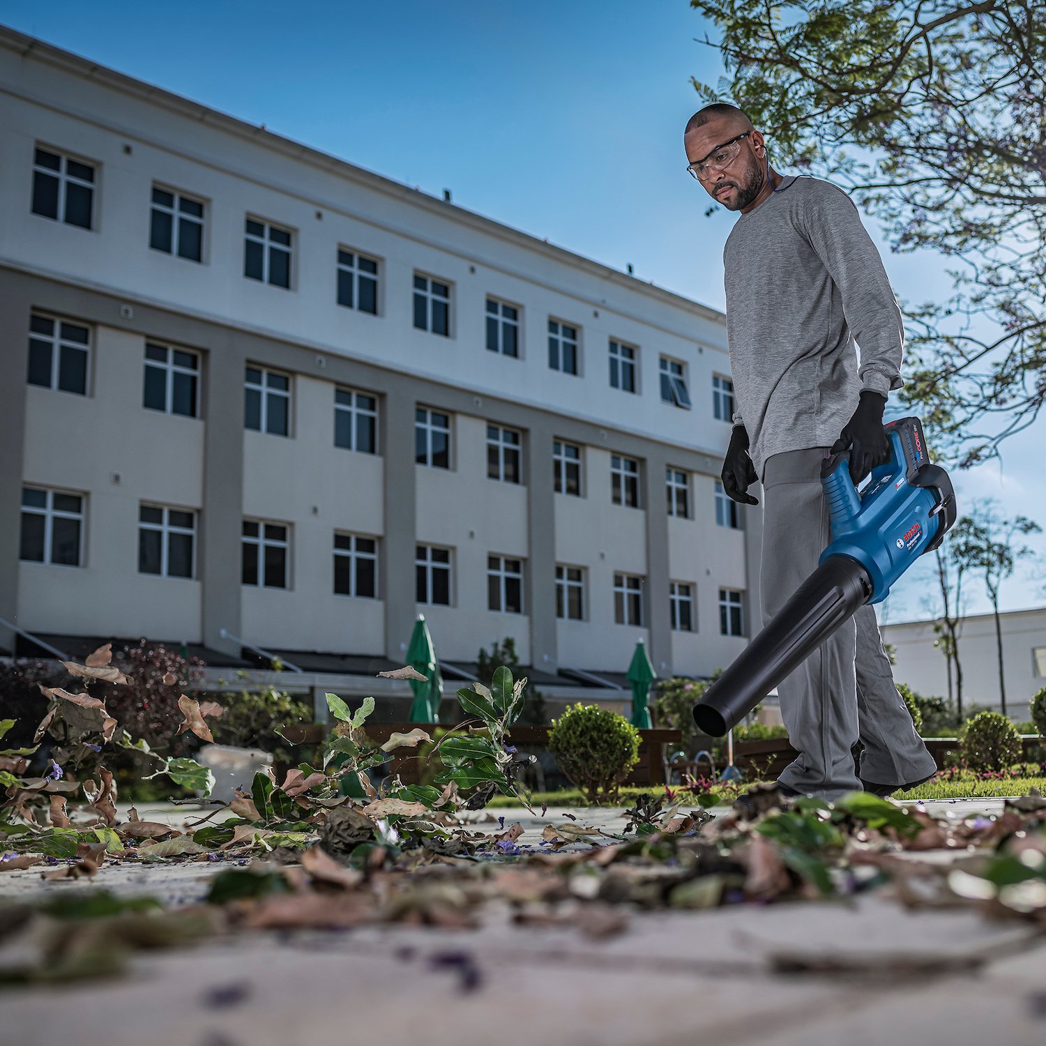 Soprador a bateria Bosch 18V, ideal para profissionais da jardinagem, limpeza urbana e manutenção que buscam liberdade sem fio e alto desempenho.