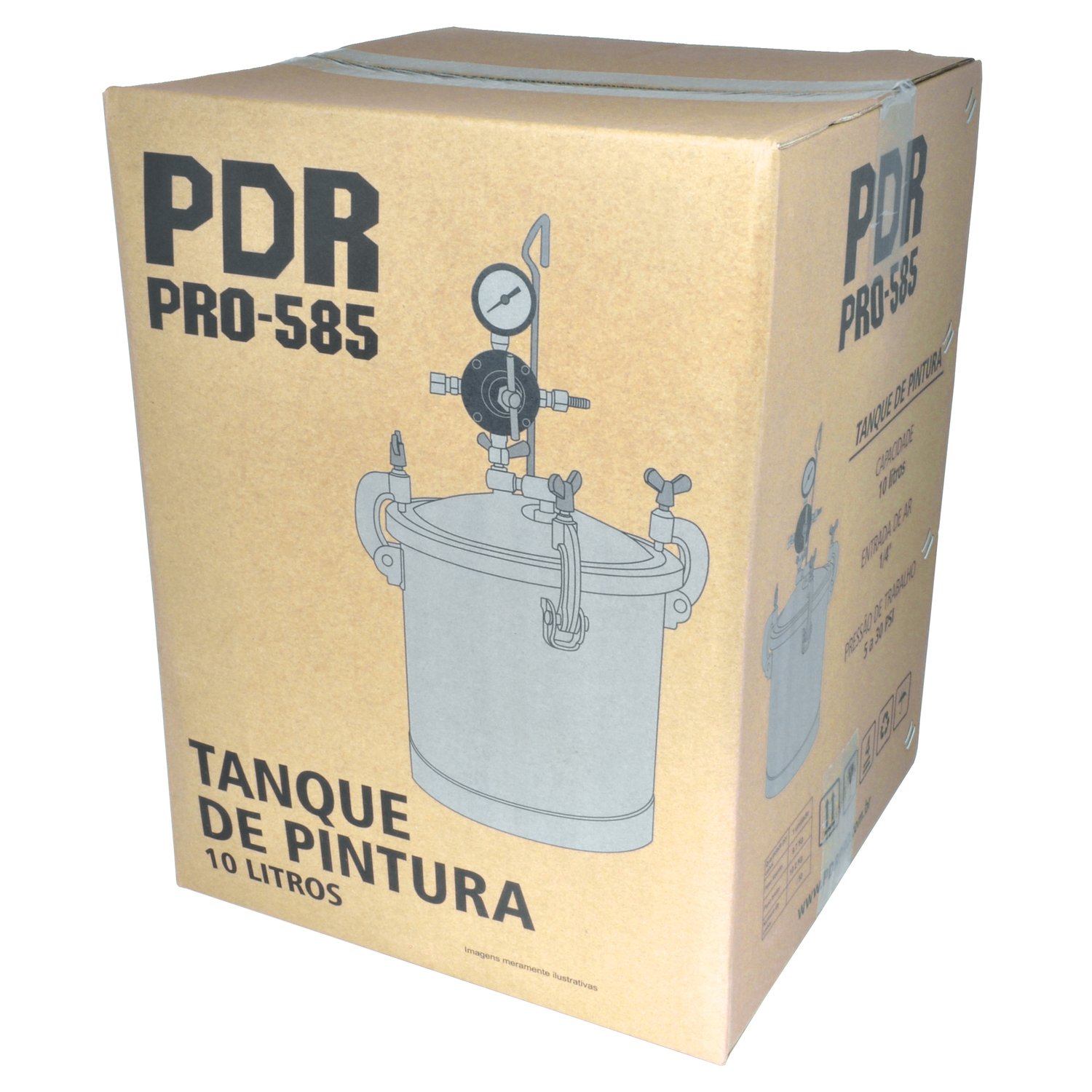 O Tanque de Pintura 10 Litros PRO-585 PDR é indicado para pinturas de carretas, (tanques e baús), pintura de containers, estruturas metálicas e máquinas de grande porte.