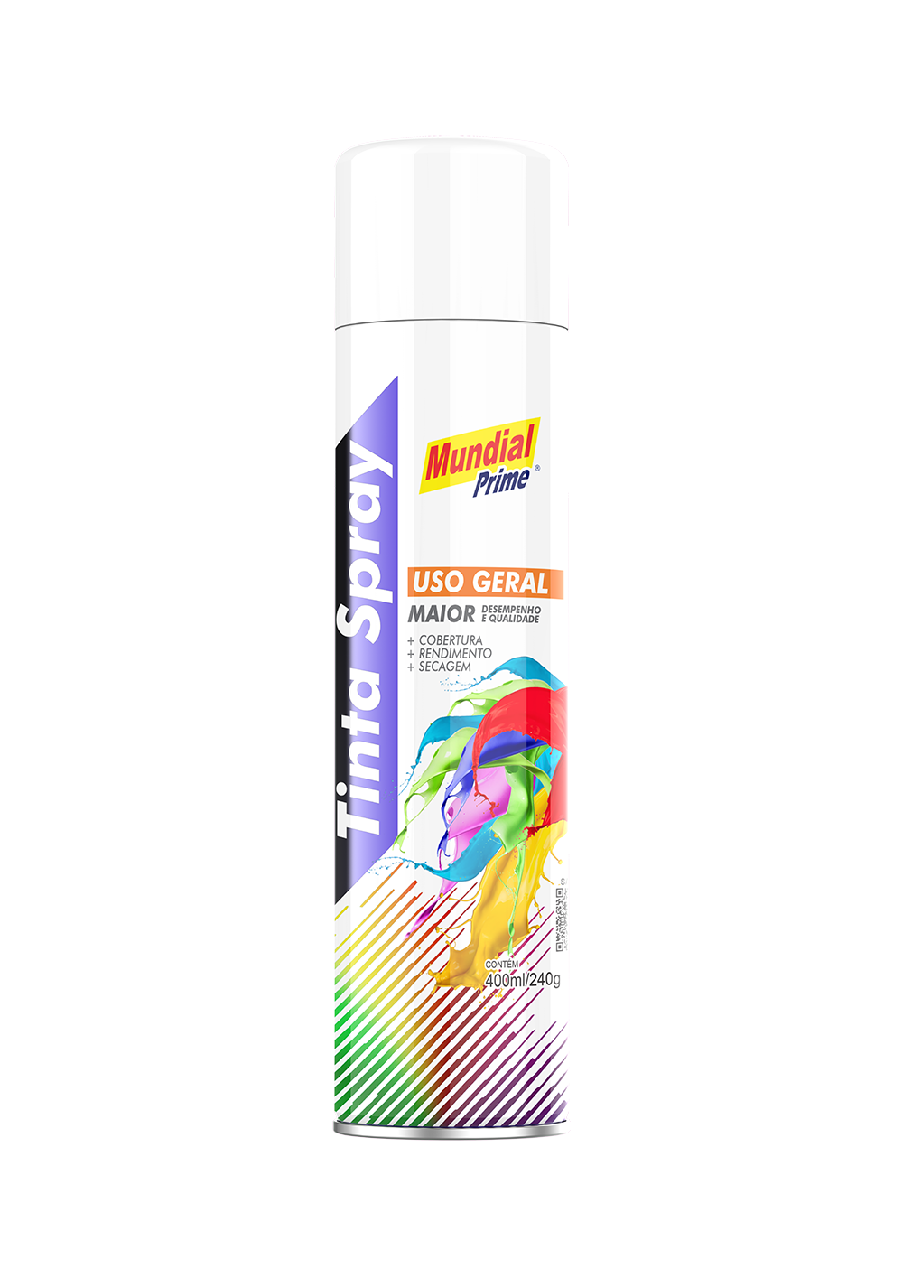 Tinta Spray Branco 400ml Mundial Prime – Brilho e Acabamento Impecável