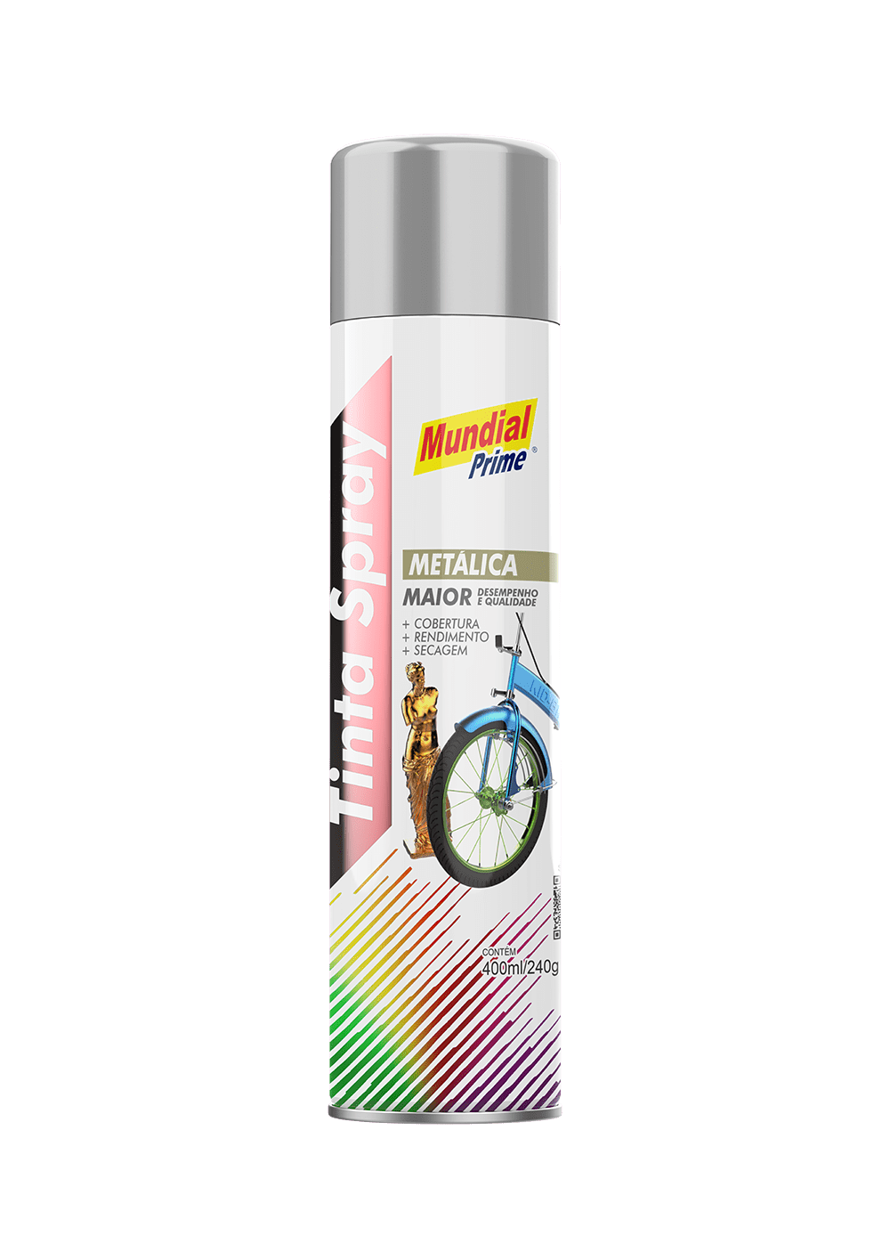 Tinta Spray Metálica Prata 400ml Mundial Prime – Brilho Moderno e Alta Cobertura