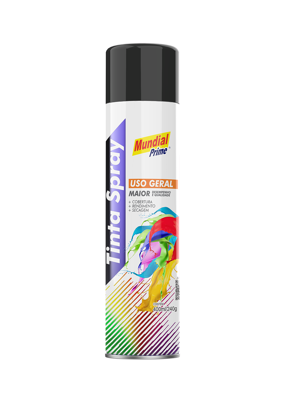Tinta Spray Preto Brilhante 400ml Mundial Prime – Acabamento Intenso e Duradouro