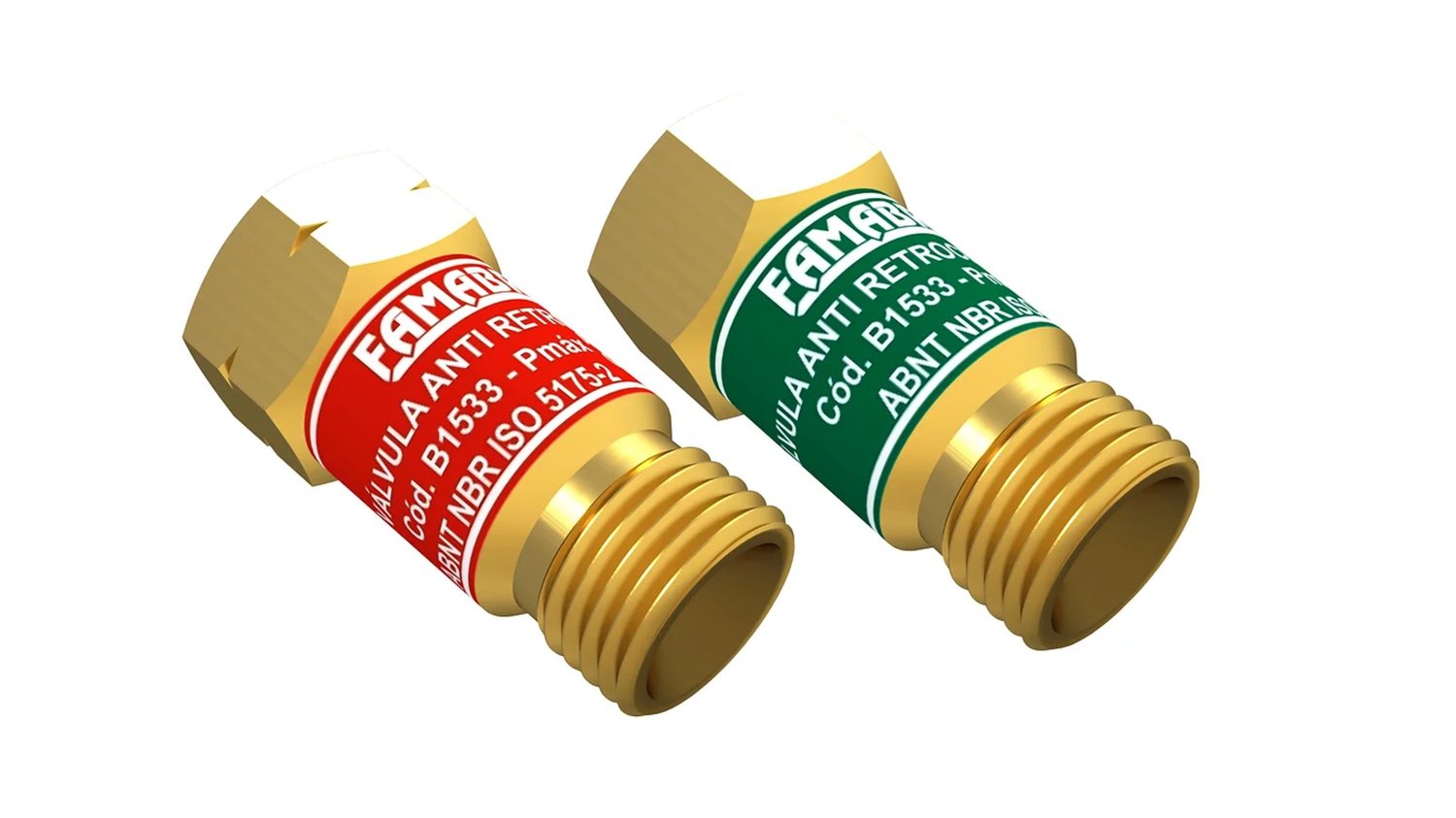 As Válvulas Anti Retrocesso Famabras são dispositivos de segurança para evitar o retorno do fluxo nos sistemas de soldagem e corte.